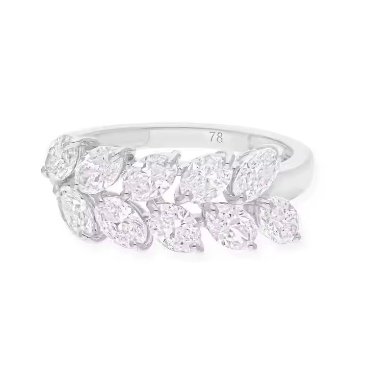 Anillo de diamante de dos capas de oro blanco de 14 quilates, anillo de compromiso de boda de diamante de corte ovalado cultivado en laboratorio, joyería fina