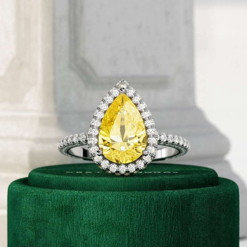 Oro amarillo de 14 quilates, corte de pera de 1,5 quilates, anillo de boda de compromiso de Halo de diamante cultivado en laboratorio amarillo vivo elegante para ella