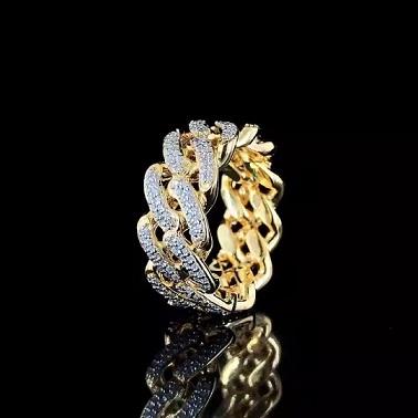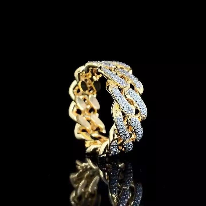 Anillo de diamante cubano de oro amarillo de 14 quilates Anillo de regalo de compromiso VVS Moissanite con joyería fina de estilo Hip Hop
