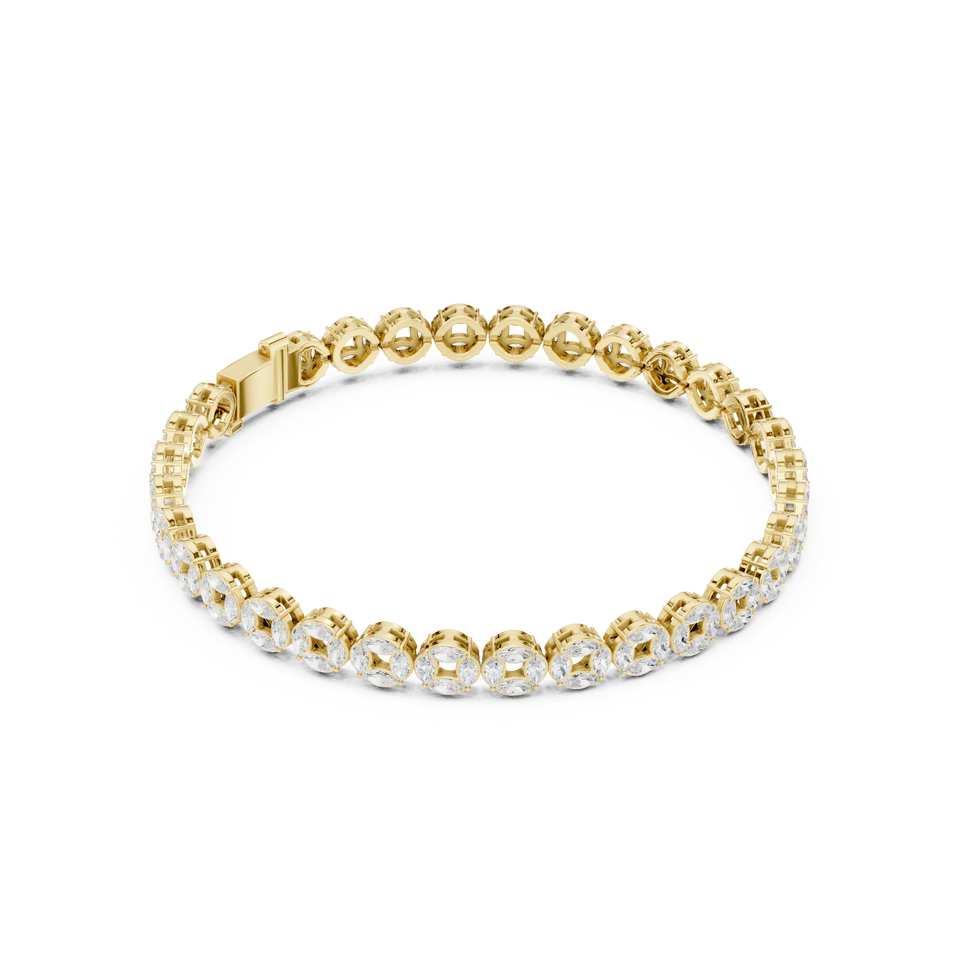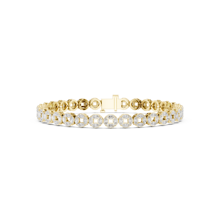 Pulsera de tenis de lujo con diamantes cultivados en laboratorio de oro amarillo de 14K, con halo redondo y diamantes circulares, para mujer