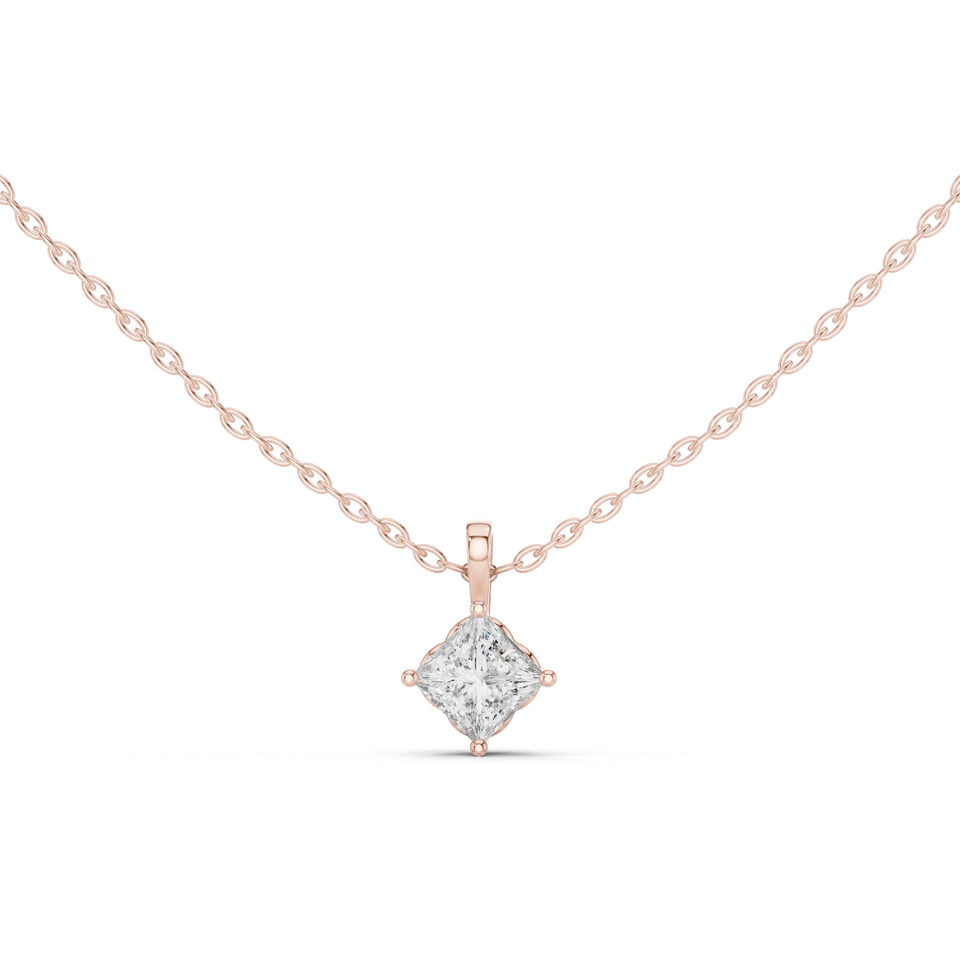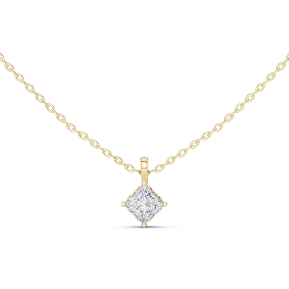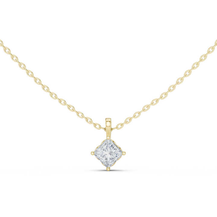 Colgante de Diamante Cultivado en Laboratorio, Estilo Princesa, Oro Amarillo de 14K, para Mujer | Compromiso | Diamante Cultivado Nuevo de 0.75 Ct