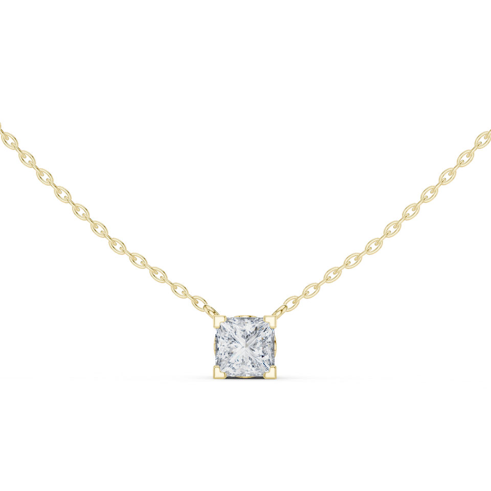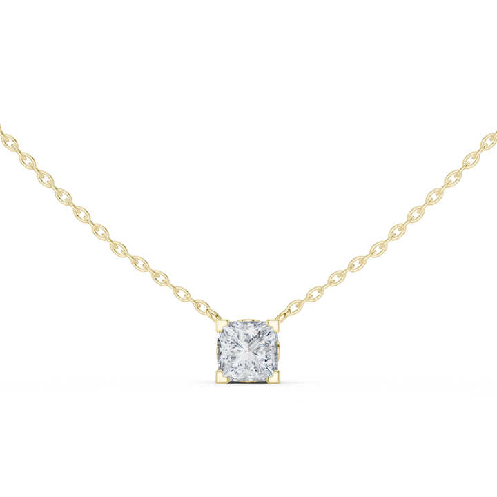 Colgante de Diamante Cultivado en Laboratorio con Corte Princesa en Oro Amarillo de 14K para Mujer | Compromiso | Diamante Cultivado Nuevo