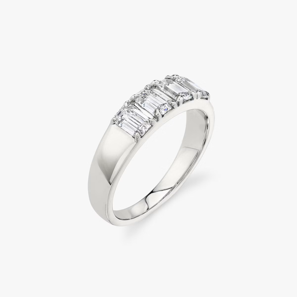 Anillo de diamantes con corte esmeralda en tetrada