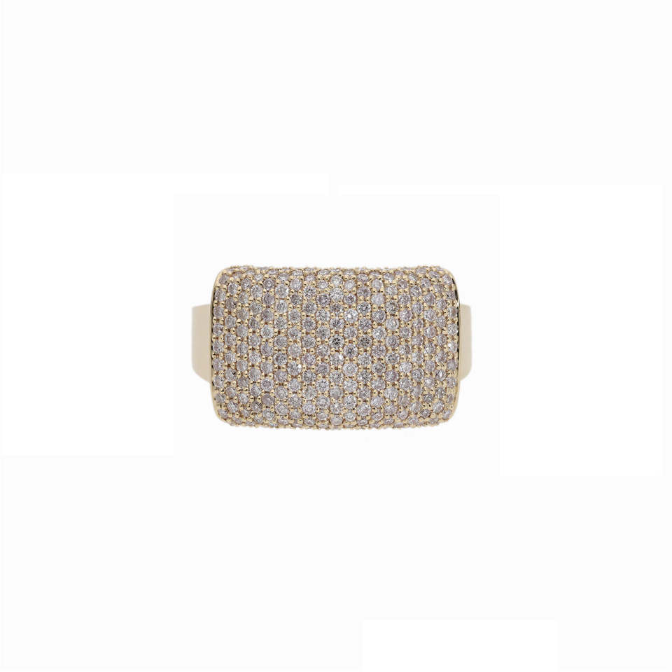 Anillo de banda ancha de corte brillante de diamante pavé chapado en rodio de oro amarillo de 14K llamativo elegante lujoso diamantes de moda