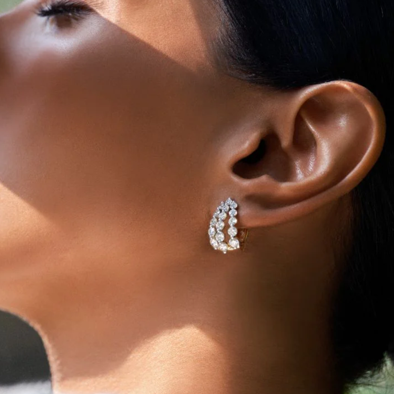 Pendientes de Aro de Oro Amarillo de 14K con Diamantes Cultivados en Laboratorio para Mujer, Corte Brillante Certificado, Joyería Moderna al por Mayor para Bodas y Fiestas