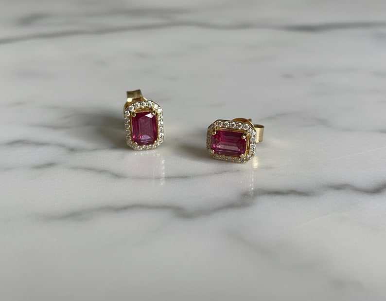 Pendientes de Oro de 14 Quilates con Gemas Naturales/de Laboratorio y Micropavé de Diamantes, Diamante, Esmeralda, Oro, Rubí, Zafiro