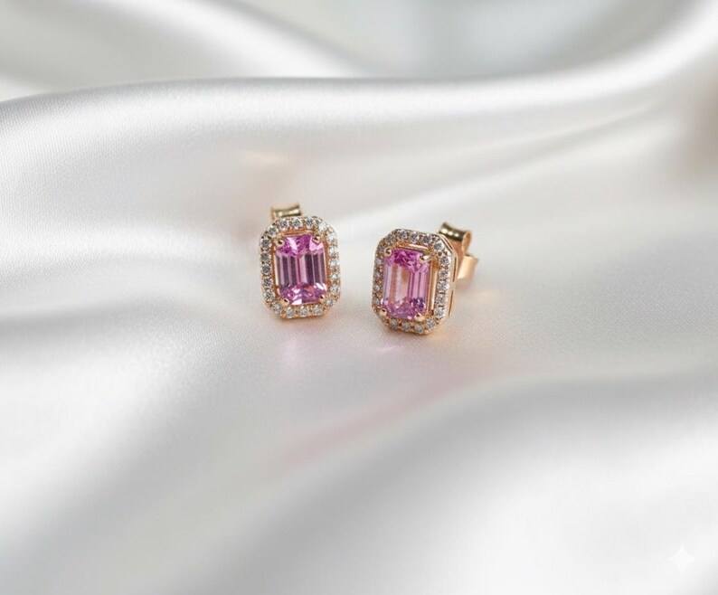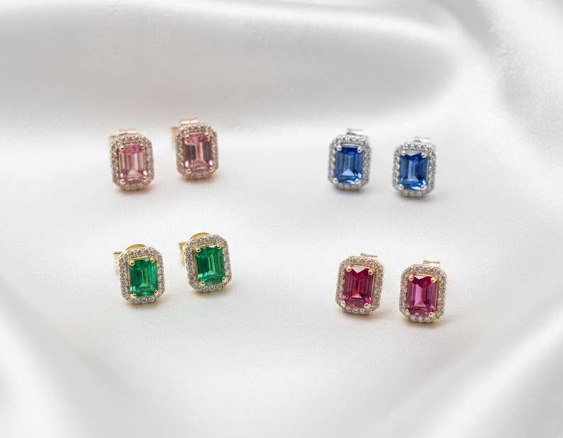 Natural/Lab Octa Gemstone & Diamond Micro Pave Stud Earrings