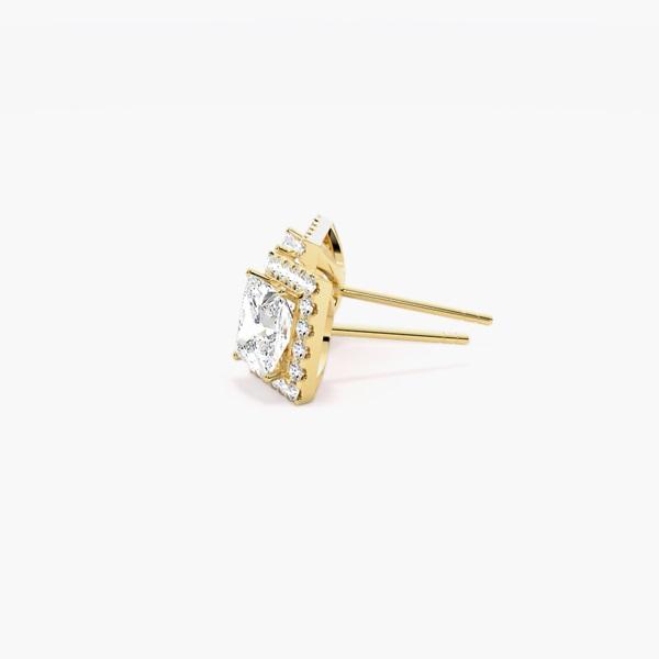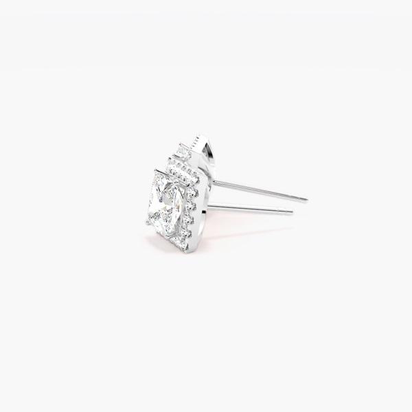 Pendientes de Oro Sólido de 14 Quilates con Baño de Rodio, Certificados por IGI, con Halo de Diamantes Cultivados en Laboratorio, Corte Princesa Clásico y Moderno, Unisex, para Fiestas y Aniversarios