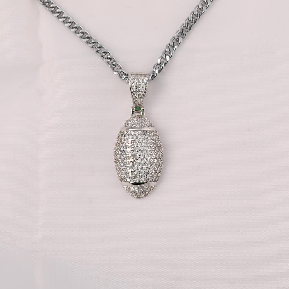 Colgante en forma de bola de rugby de oro macizo de 14 quilates con diamante redondo pequeño cultivado en laboratorio Unisex para todas las ocasiones Hip Hop elegante para fiesta