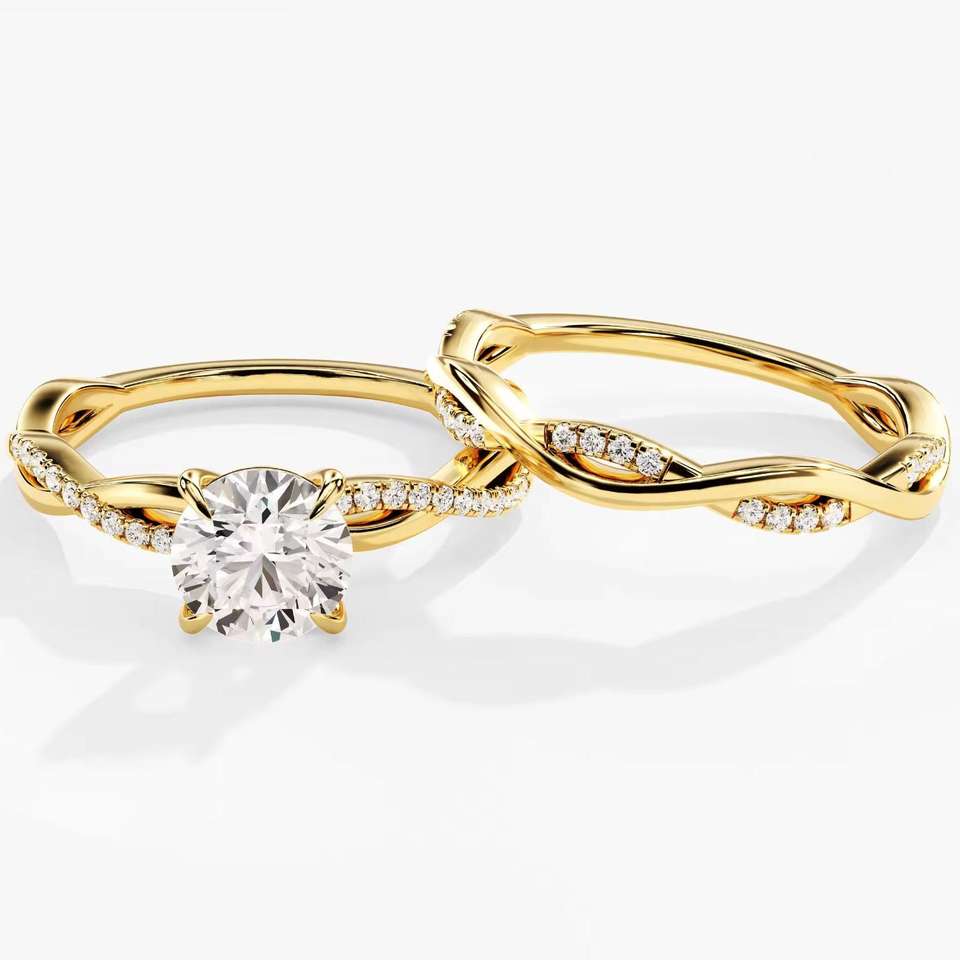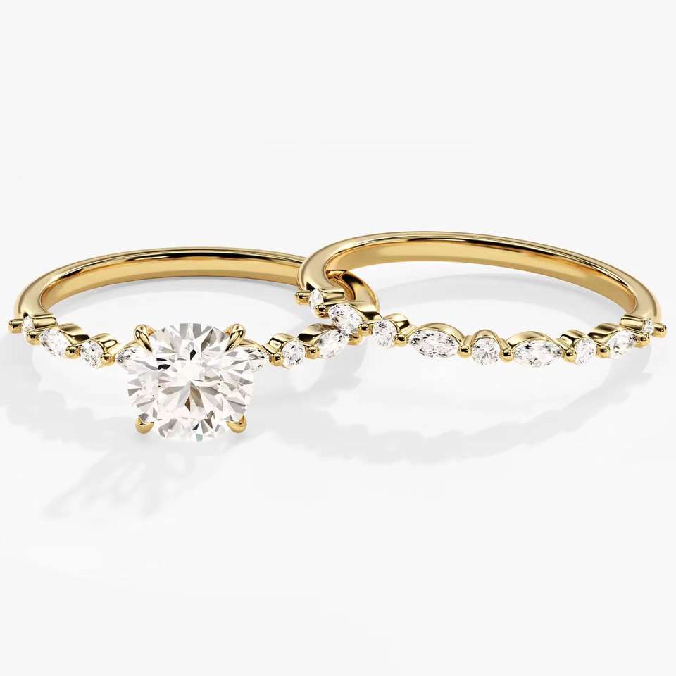 Anillo de Compromiso de Diamante Solitario de Corte Redondo de 1.5 CT en Oro de 14k y 18k, Conjunto de Anillos de Boda de Diamante, Conjunto Nupcial de un Exportador Indio