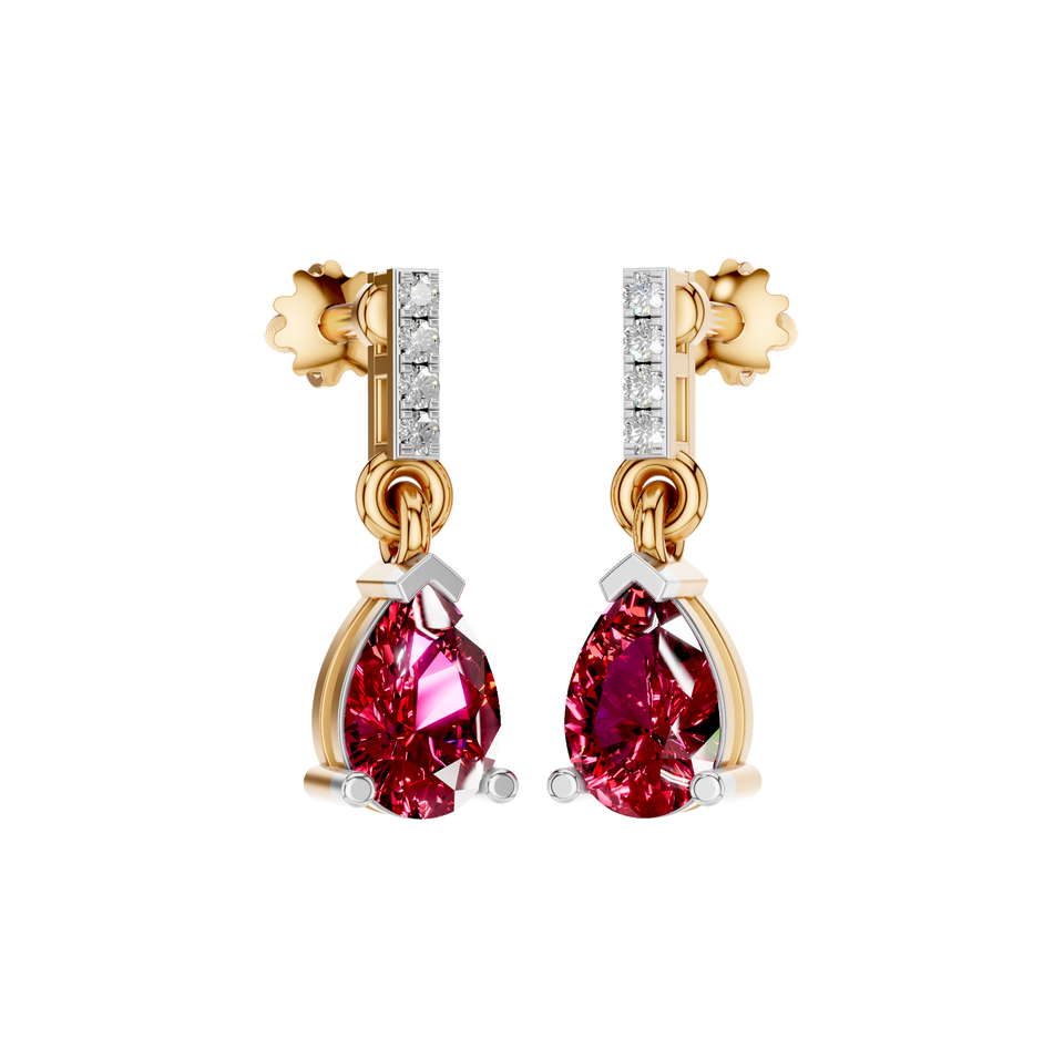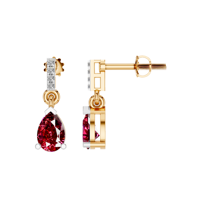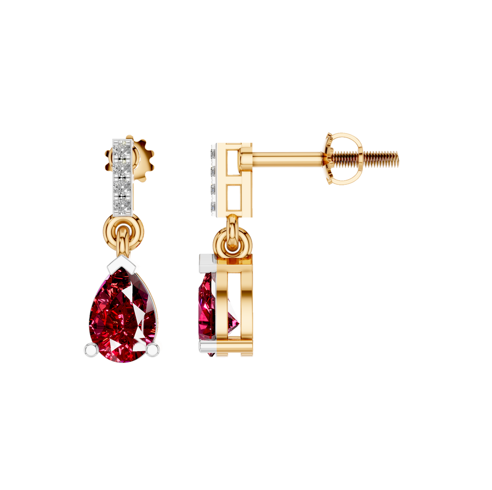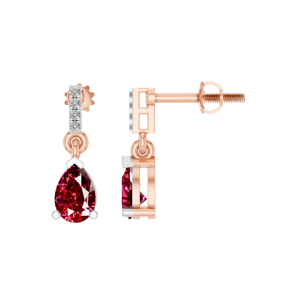 Estilo:Elegantes pendientes colgantes de rubí con corte de pera y detalles de diamantes
