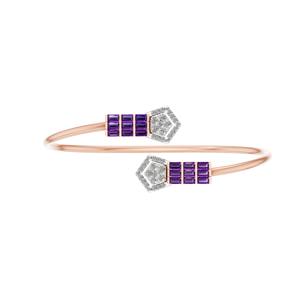 14K oro diseño geométrico brazalete pulsera amatista IGI certificado lujo joyería fina para mujeres Zemerra joyas OEM ODM