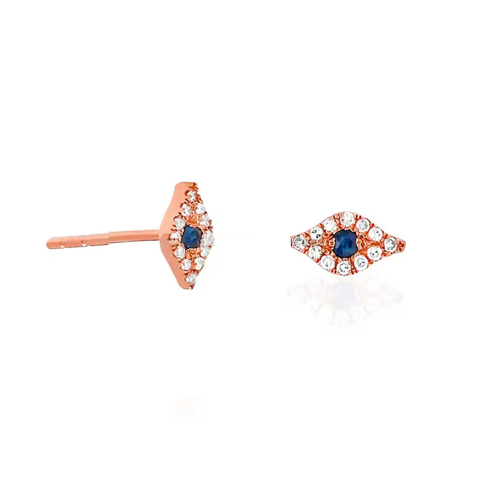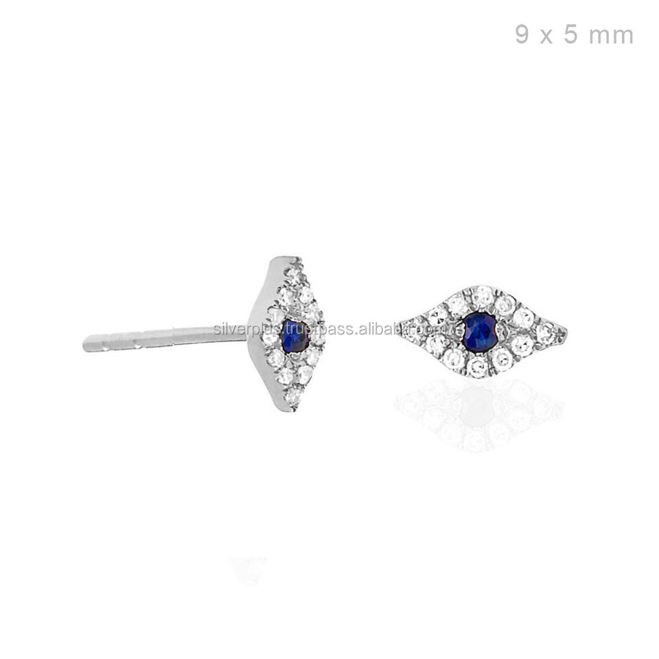 Pendientes de Oro de 14k, Color H, Claridad SI, con Piedra Azul en el Centro