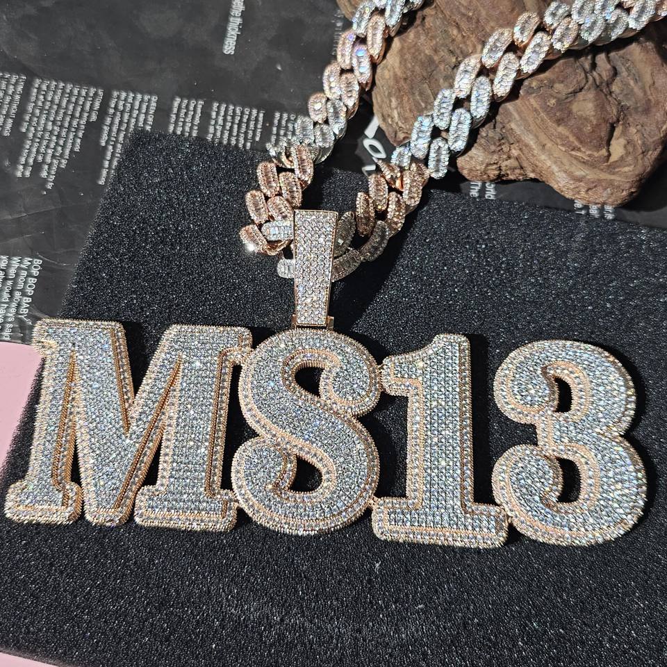 Colgante de LETRA DE DIAMANTE VVS Moissanite personalizado de oro rosa de 14K con cadena helada Colgantes y dijes de joyería fina para hombres
