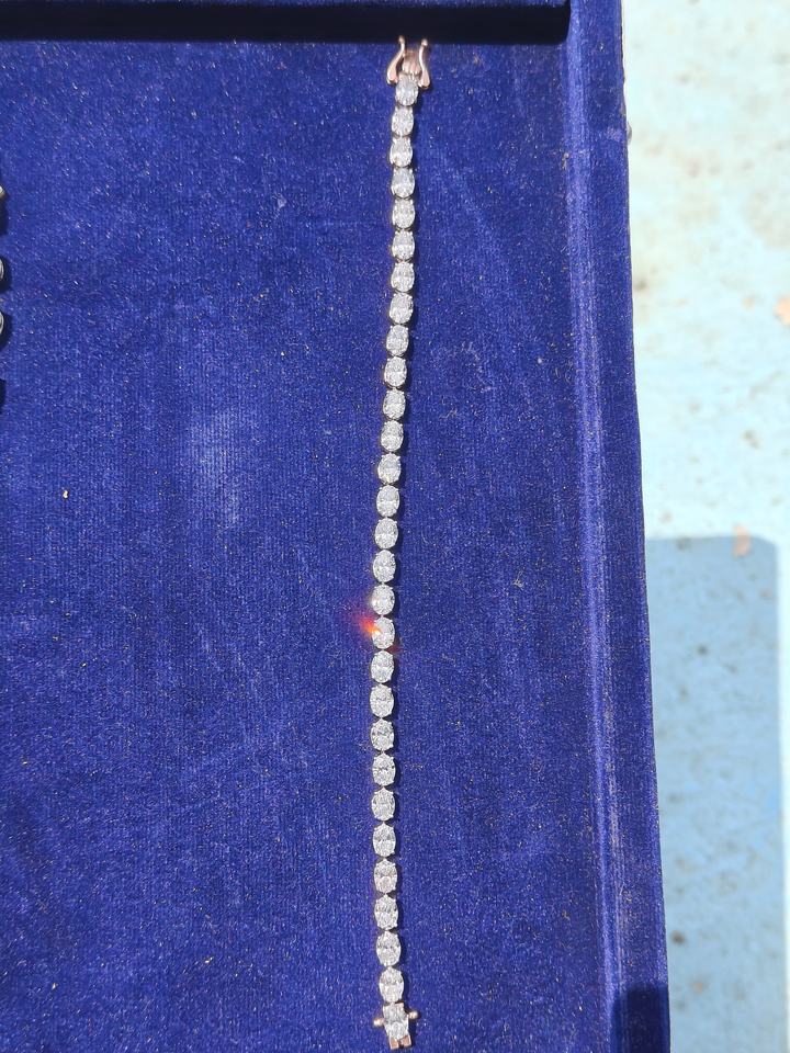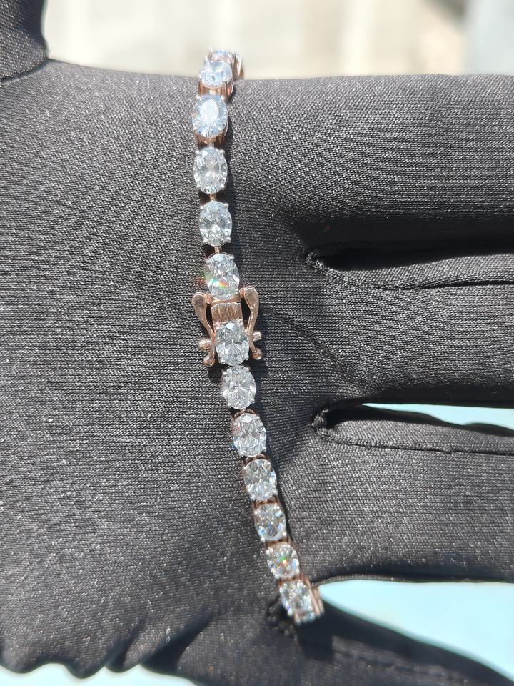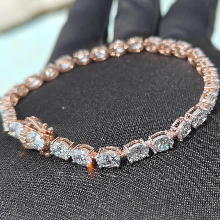 Pulsera de tenis de 4 puntas de corte ovalado de diamante de laboratorio de 2mm de oro macizo de 14K, pulsera de diamantes genuinos, hermosa pulsera de diamantes de oro rosa