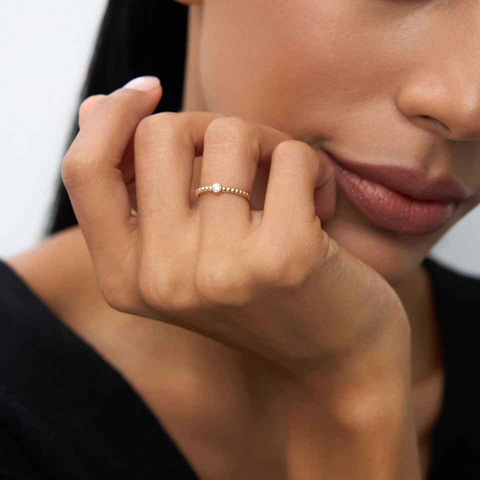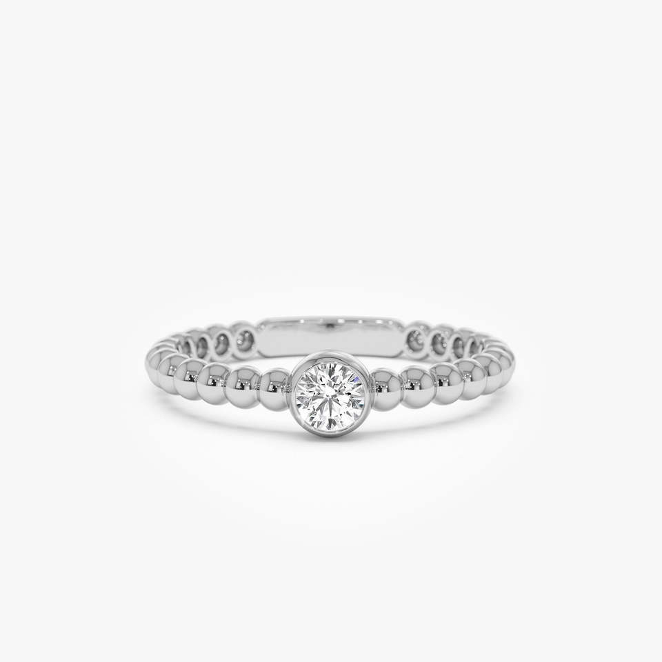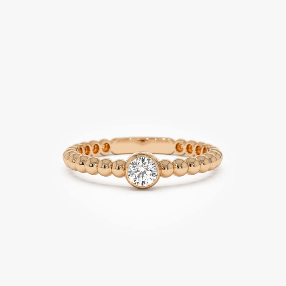 Anillo de Diamantes Solitario con Diseño de Cuentas en Oro Sólido de 14k, Joyería Fina, Diamante Natural Certificado, Anillos de Compromiso y Boda