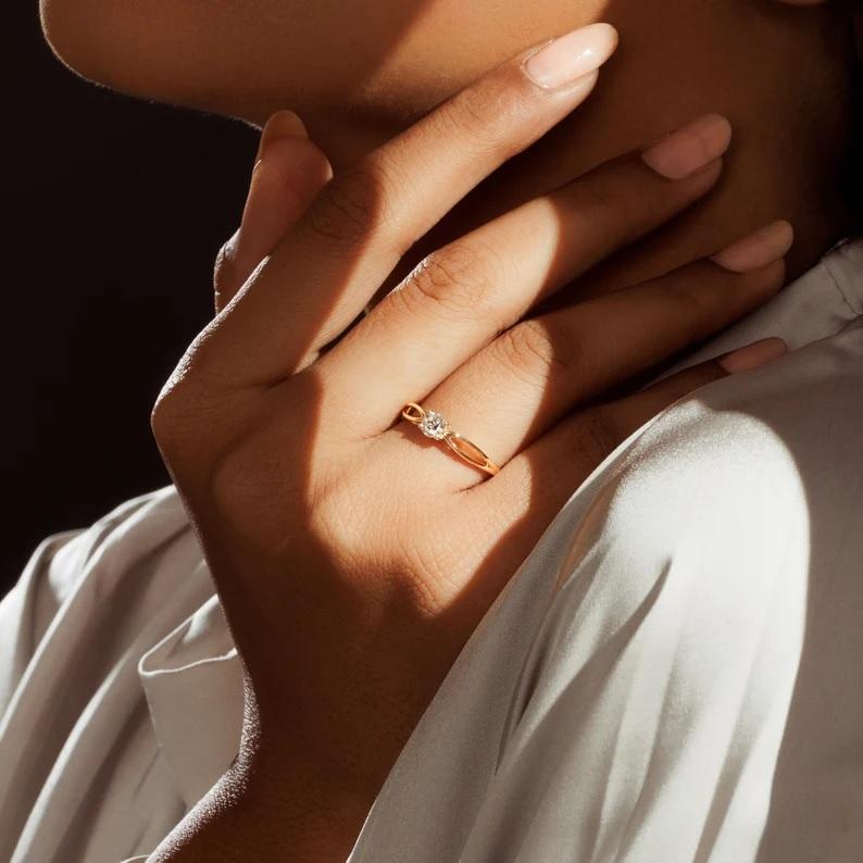 14K Sólido Lab Grown Diamond Jewelry Solitaire Diamond Wedding Band Lab Grown Diamond Ring para mujeres CVD/HPHT Jewelry para ella