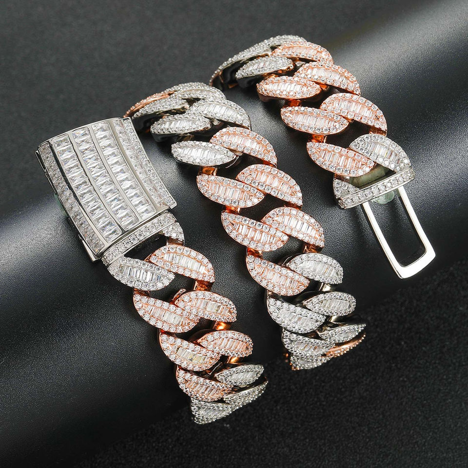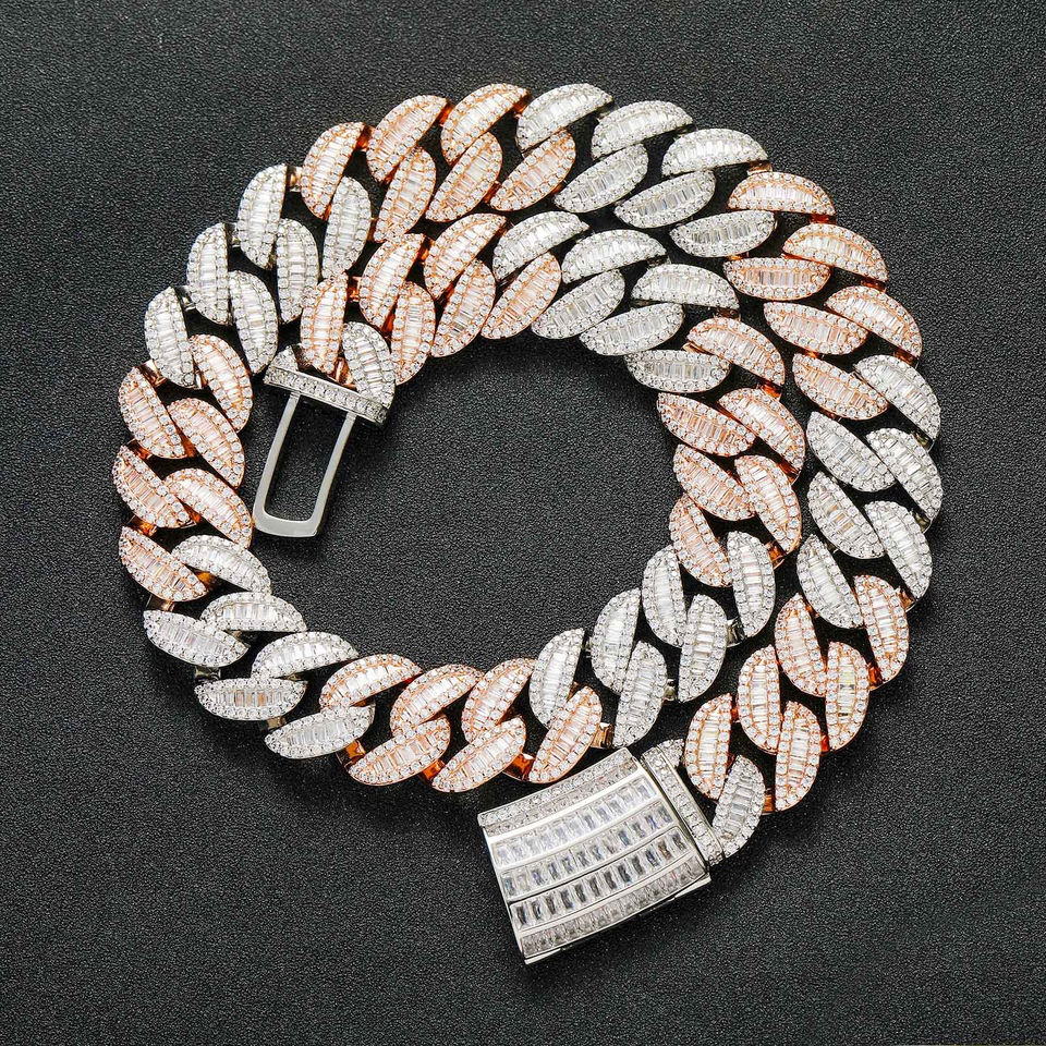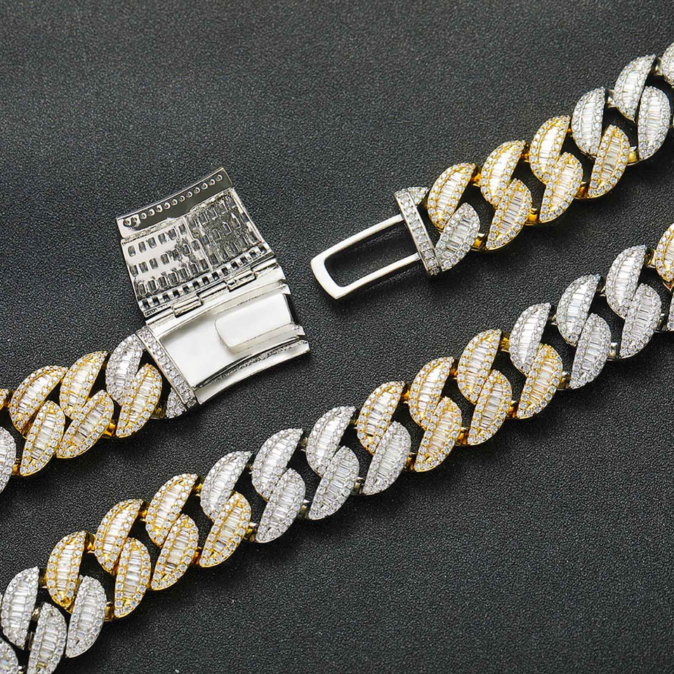 Cadena cubana chapada en oro blanco sólido de 14K para hombre, cadena de diamante de corte Baguette VVS Moissanite personalizada IGI para compromiso de regalo