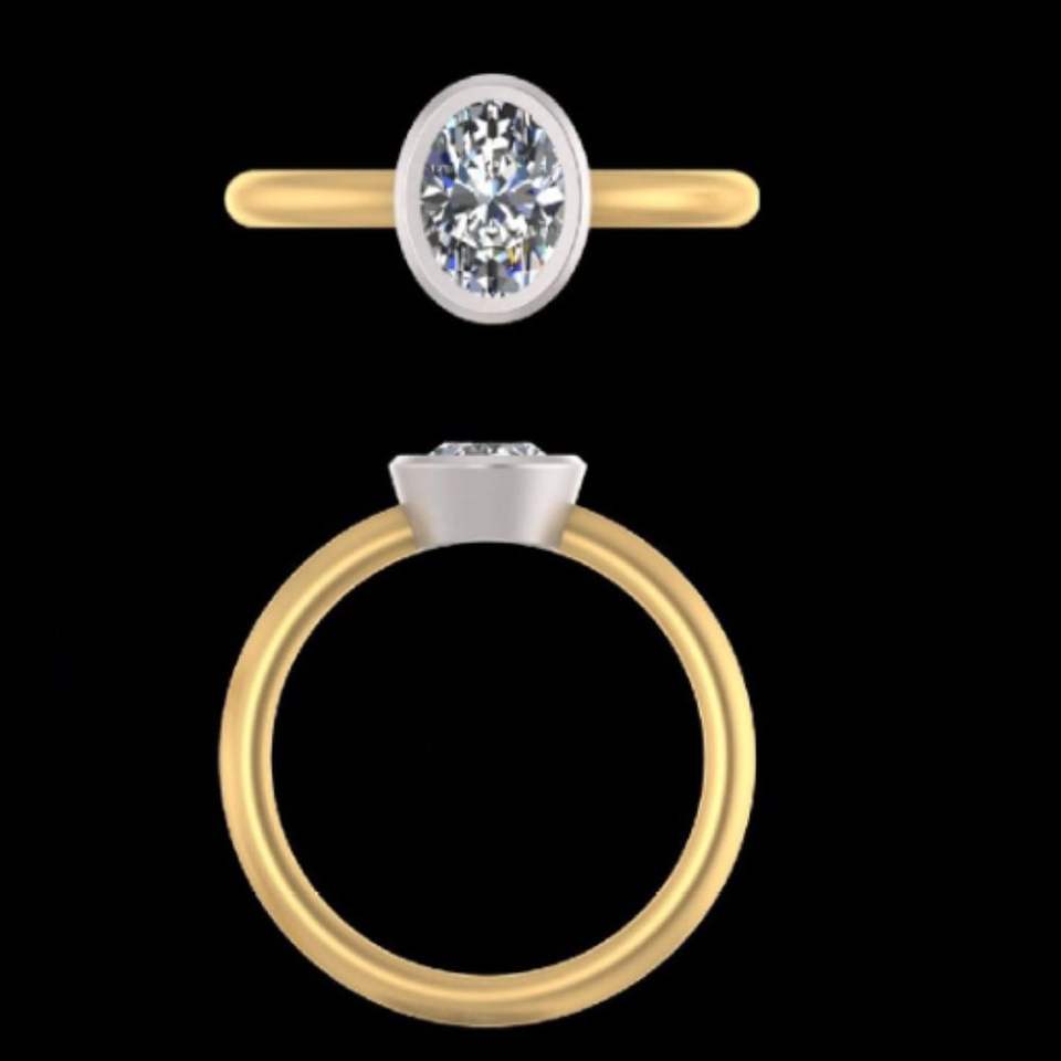 Anillo de Compromiso con Bisel Ovalado de Diamante Cultivado en Laboratorio en Oro de 14k de Dos Tonos, Anillo de Boda Minimalista Solitario, Joyería Fina para Mujer