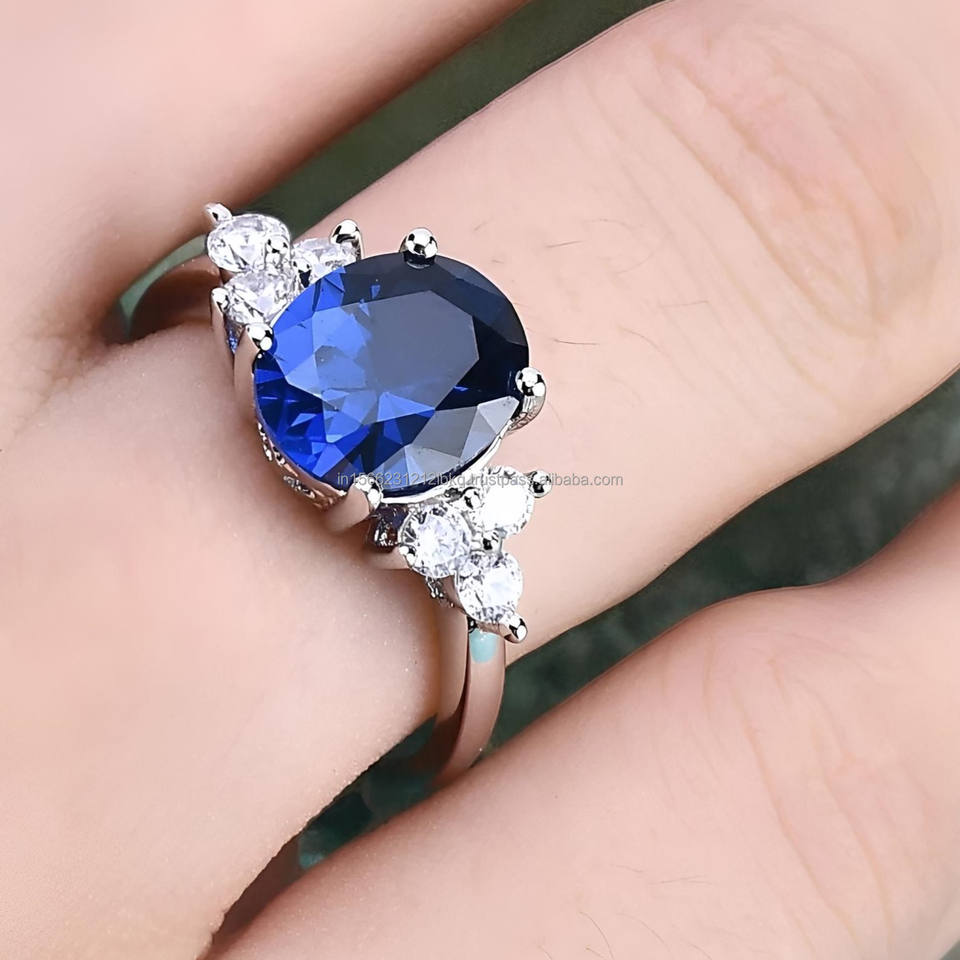 Anillo de compromiso de diamantes cultivados en laboratorio de lujo personalizado en oro blanco de 14K VVS Claridad Banda de corte ovalado Certificado IGI para boda
