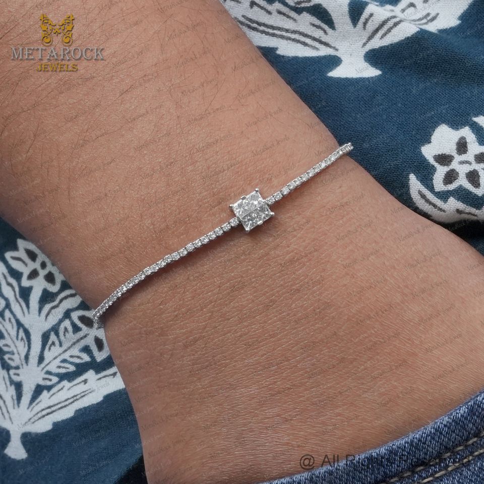 Nombre del brazalete:Diamante Tenis Brazalete 14K Blanco Oro Joyería