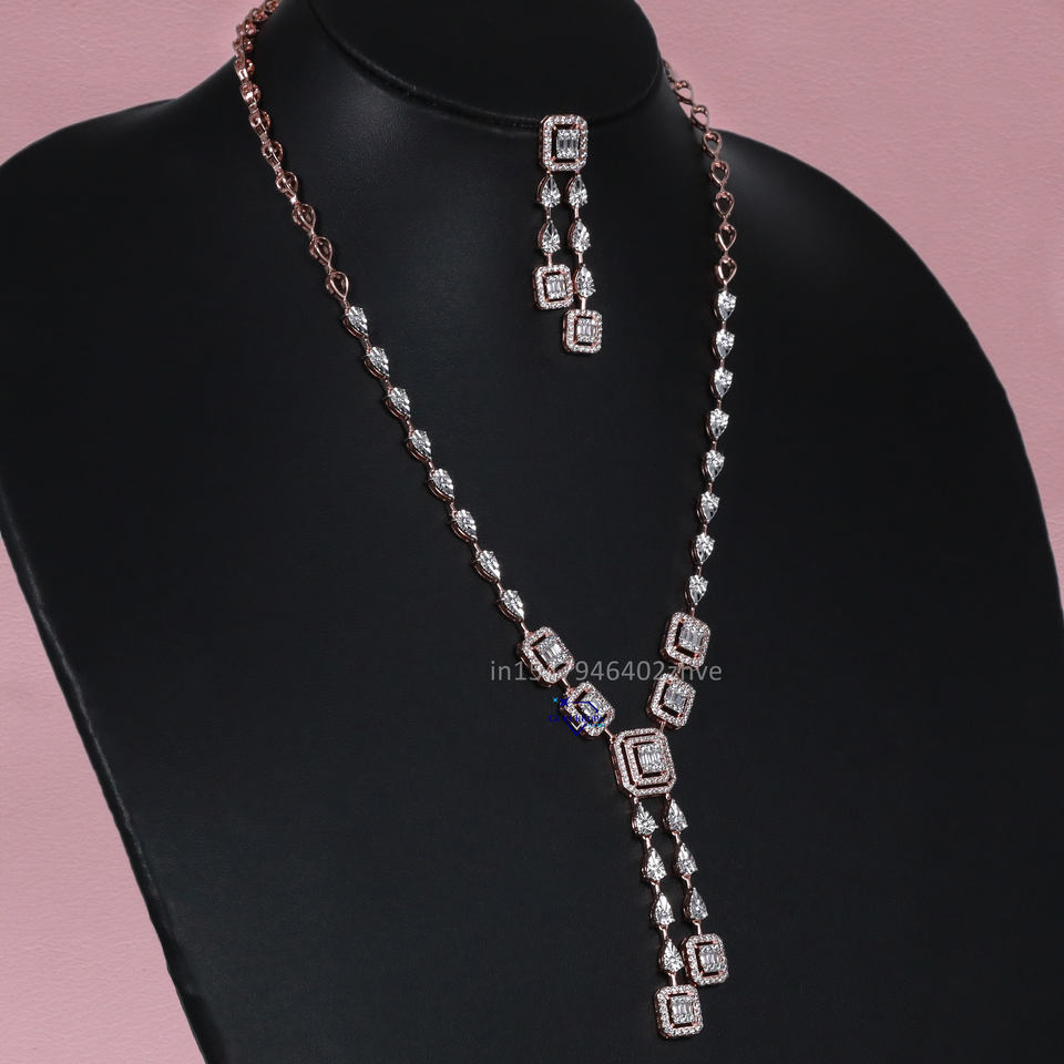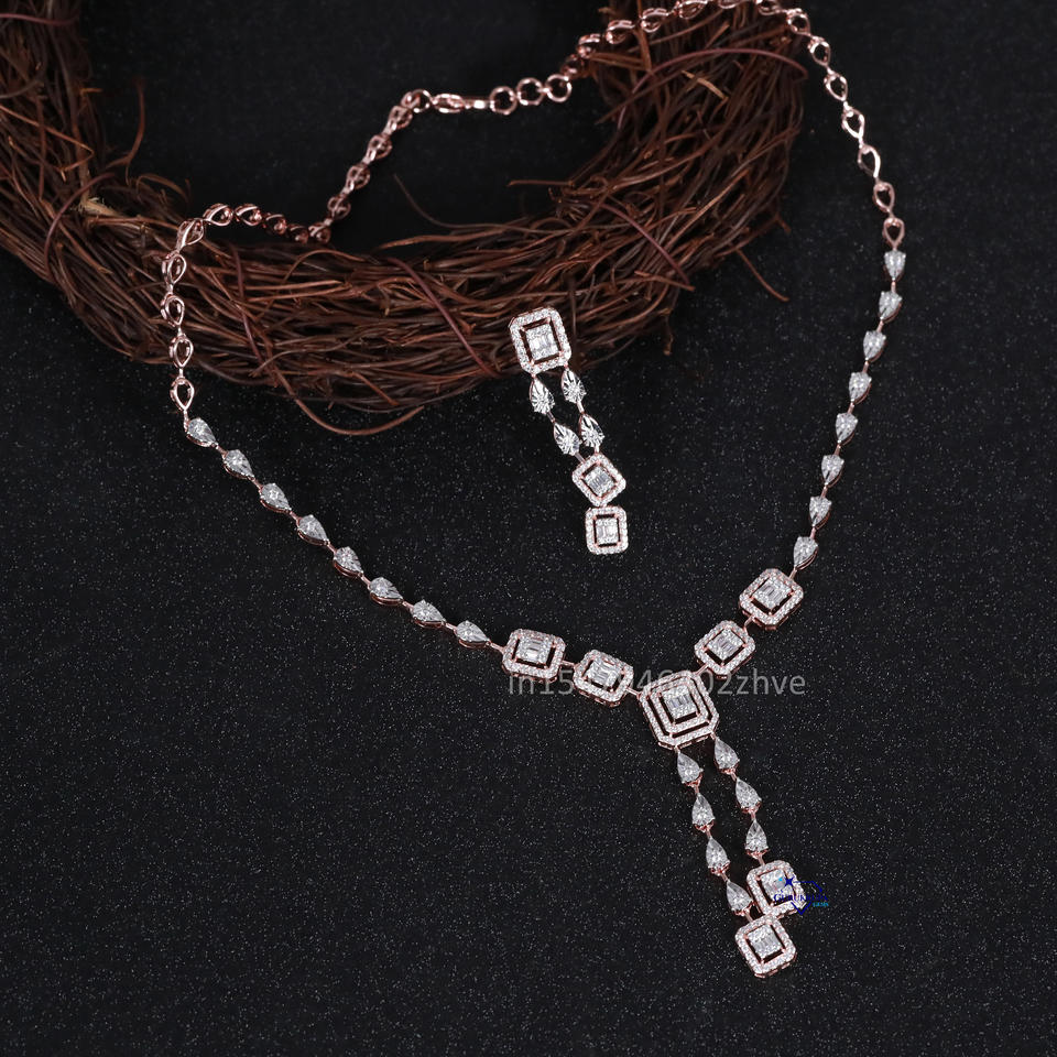 Nombre del producto:Collar de diamantes de laboratorio con pendientes