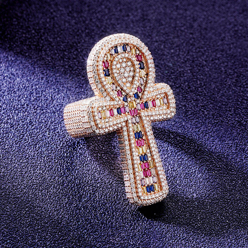 Anillo de hip hop de oro rosa macizo de 14 quilates con diamante CVD cultivado en laboratorio para hombres y mujeres, anillos cruzados, fabricante directo.