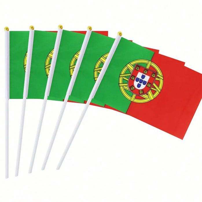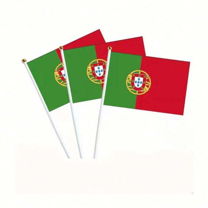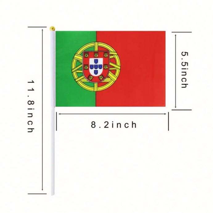 Banderas Pequeñas de Portugal de 14x21cm, 100% Poliéster, con Asta, para Decoración de Fiestas
