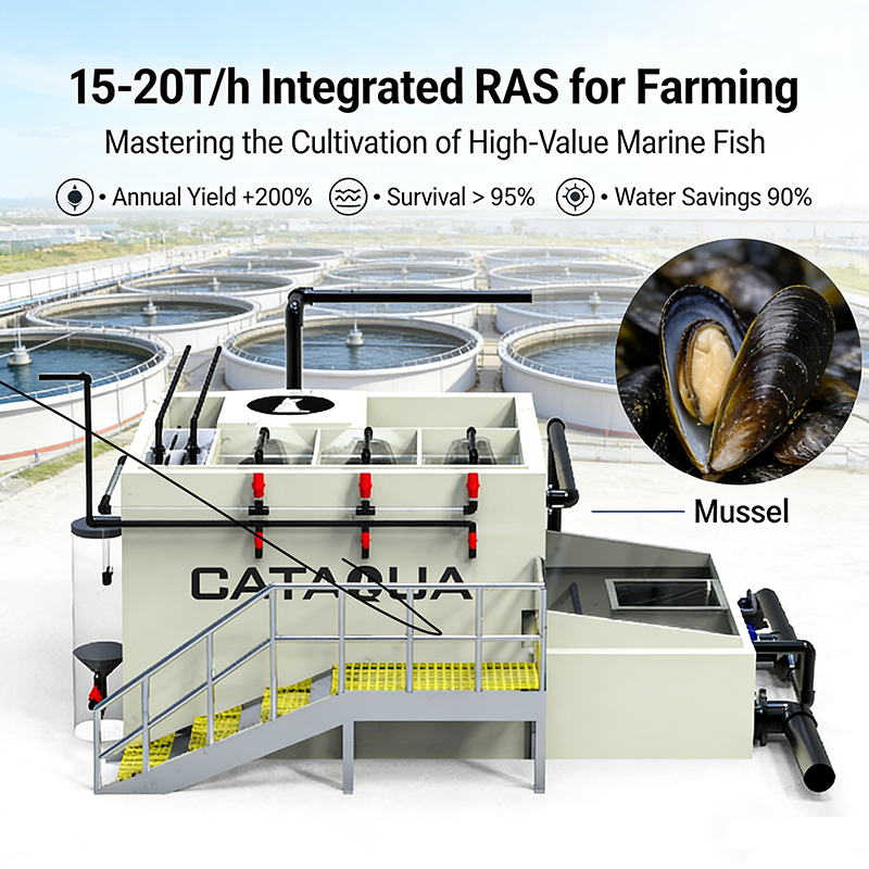 Estanques de Peces con Sistema RAS Integrado de 15-20T/h para Piscicultura, Larga Vida Útil para Producción Comercial de Peces