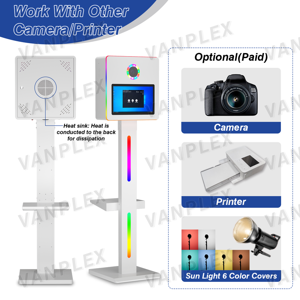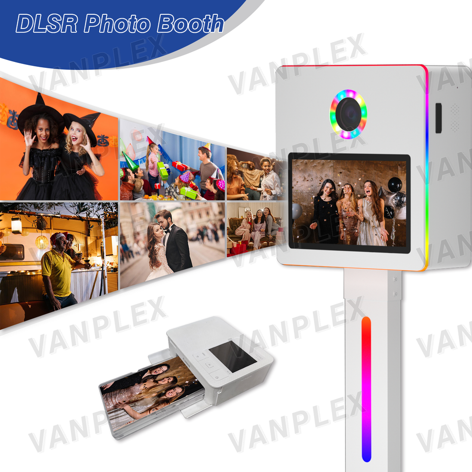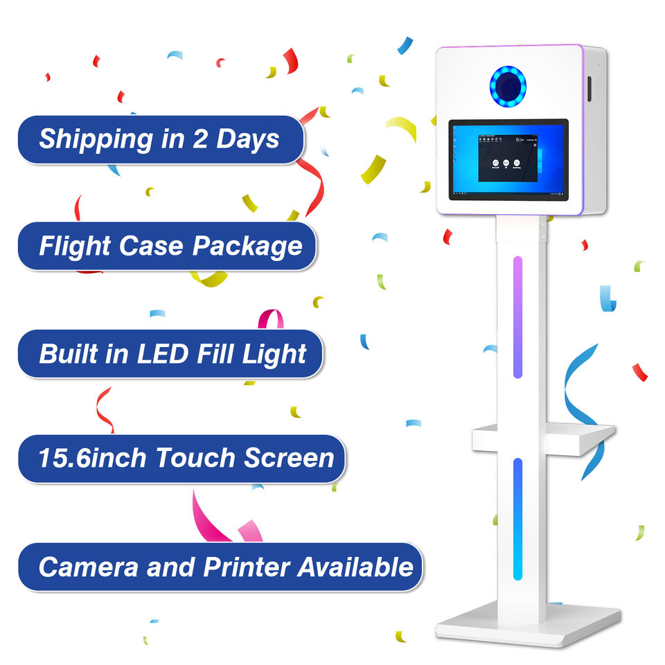 Cabina de Fotos Selfie DSLR de 15.6 Pulgadas | Cabina de Impresión Instantánea con Cámara, Pantalla Táctil Interactiva y Cuerpo Metálico Tipo Avión | Logotipo Gratuito