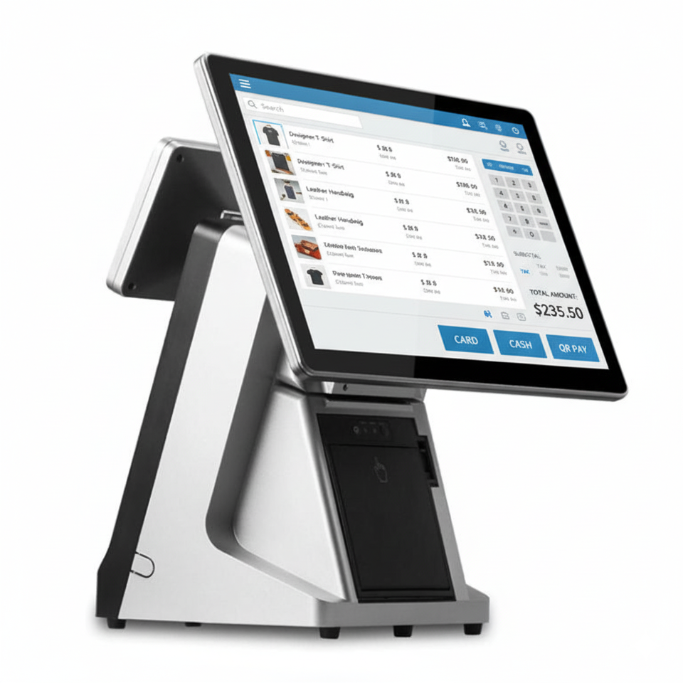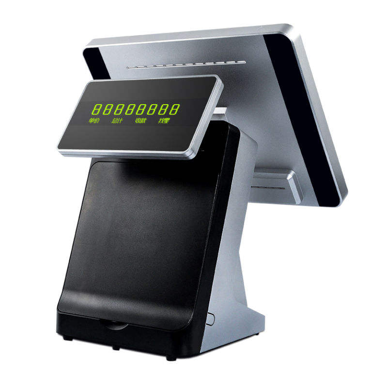 Sistema POS Android de Pantalla Táctil Dual de 15.6 Pulgadas, Terminal POS Todo en Uno con Pantalla para el Cliente e Impresora de Recibos Integrada