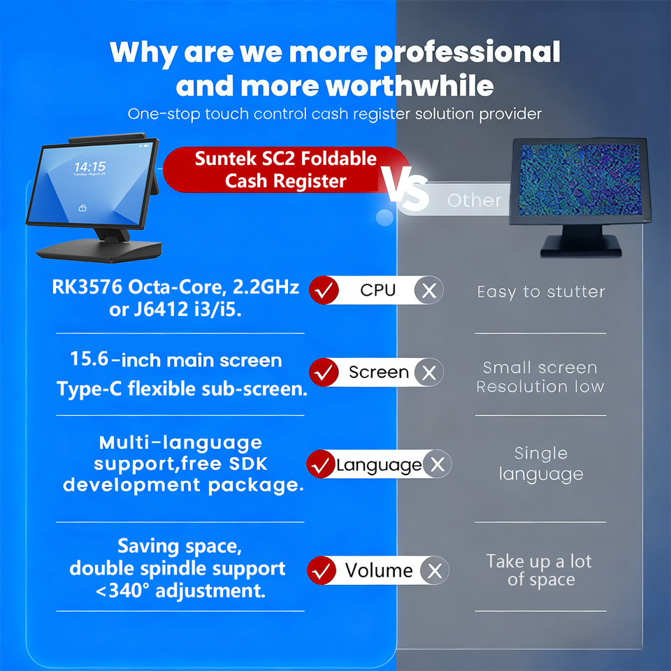 Terminal de Punto de Venta (TPV) SUNTEK SC2 de 15.6 Pulgadas con Soporte Plegable, Bajo Costo de Envío, Pantalla Táctil Capacitiva Octa-Core de Última Generación