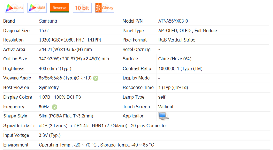 Pantalla para Portátil de 15.6 Pulgadas ATNA56YX03-0 1920*1080 FHD 60HZ AM-OLED EDP/30 Pines, Compatible con ASUS VivoBook Pro 15 M3500QC M6500