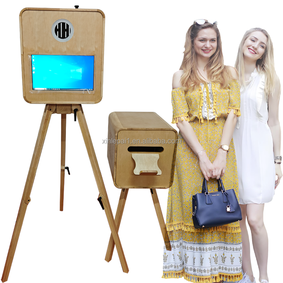 Cabina de Fotos de 15.6 Pulgadas con Textura de Madera y Color de Pintura Vintage, Compatible con Cámaras DSLR y SLR para Bodas y Fiestas
