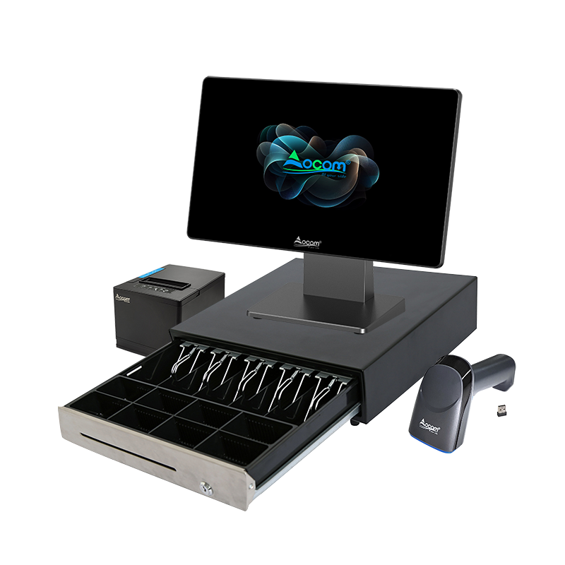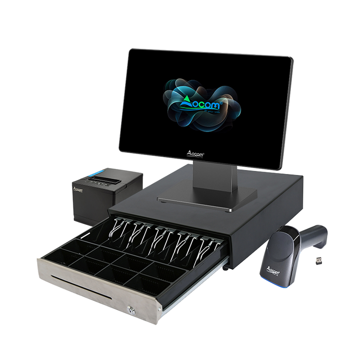 Sistema POS de Escritorio de 15.6 Pulgadas con Escáner e Impresora, Conjunto Completo de Caja Registradora para Supermercados, Farmacias y Fruterías