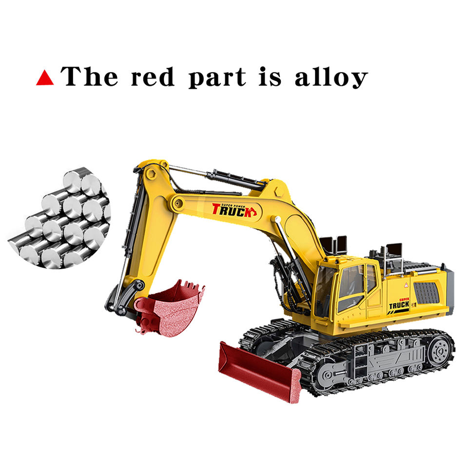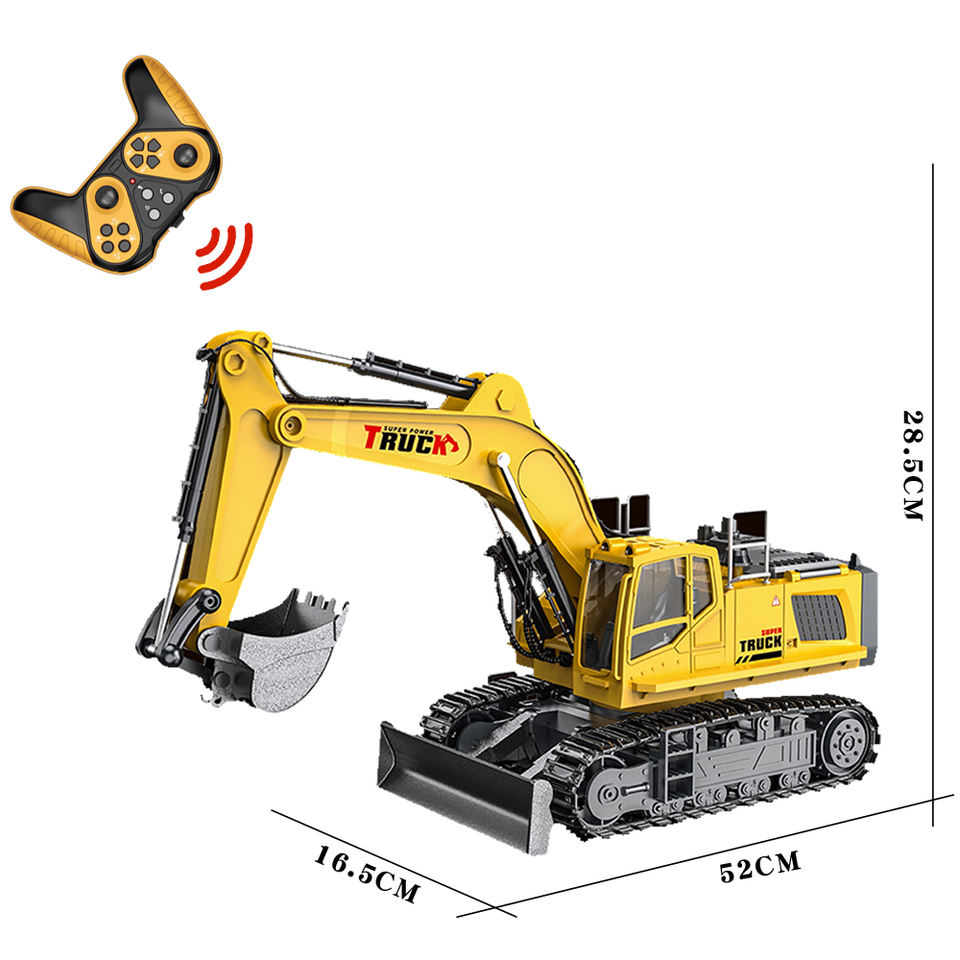 Camión de juguete excavadora RC de aleación grande de 15 canales con pulverizador, 52 cm, máquina de construcción de ingeniería con control remoto, cargador de vehículo
