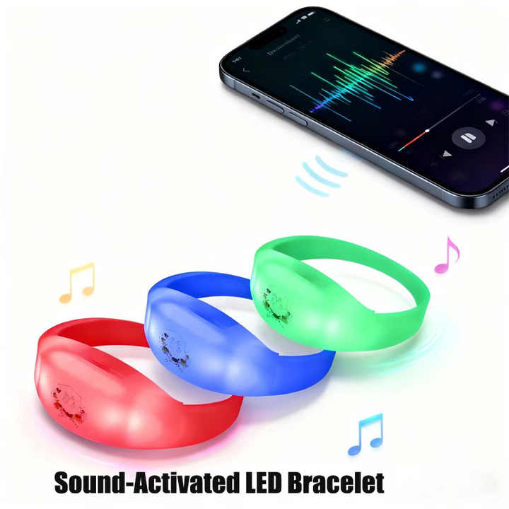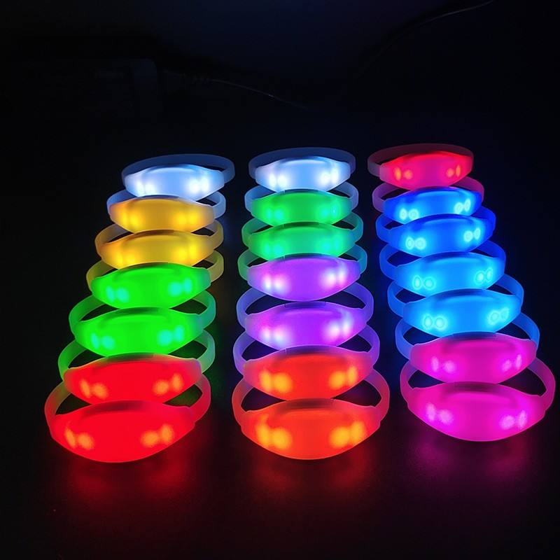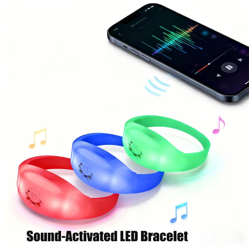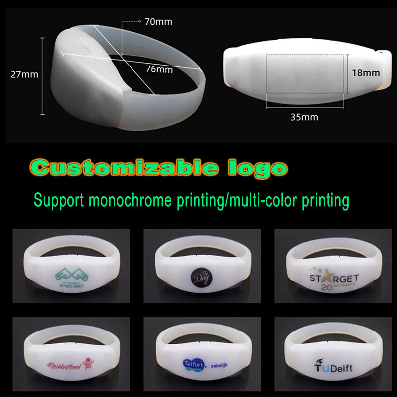 Pulsera de Fiesta de Plástico LED con Logotipo Personalizado de 15 Colores, Activada por Sonido y Movimiento, Pulsera LED Duradera y Portátil