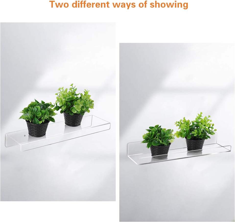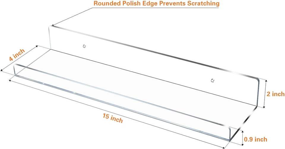 Estante de Pared Acrílico Transparente de 15 Pulgadas, Paquete de 4, Estante Invisible de 5 mm de Grosor, Organizador de Exhibición para Baño