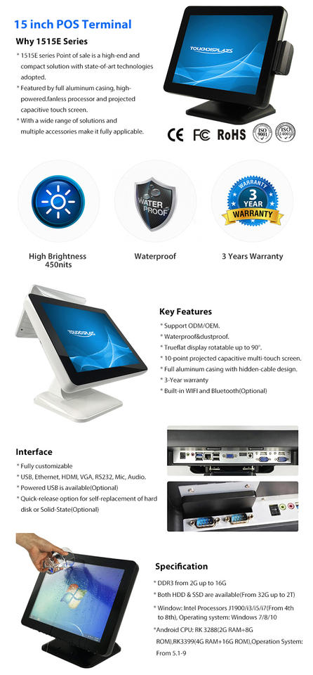 Máquina de cajero todo en uno, caja registradora de 15 pulgadas, sistema pos, kassa