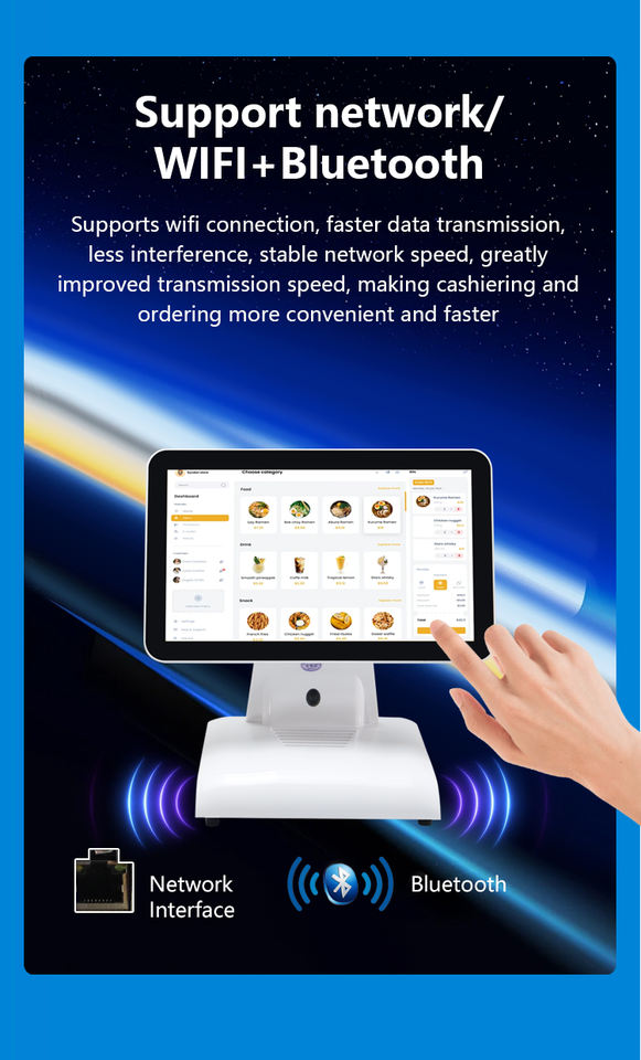 Máquina POS todo en uno de 15 pulgadas con sistema Android y Windows, caja registradora con pantalla para el cliente
