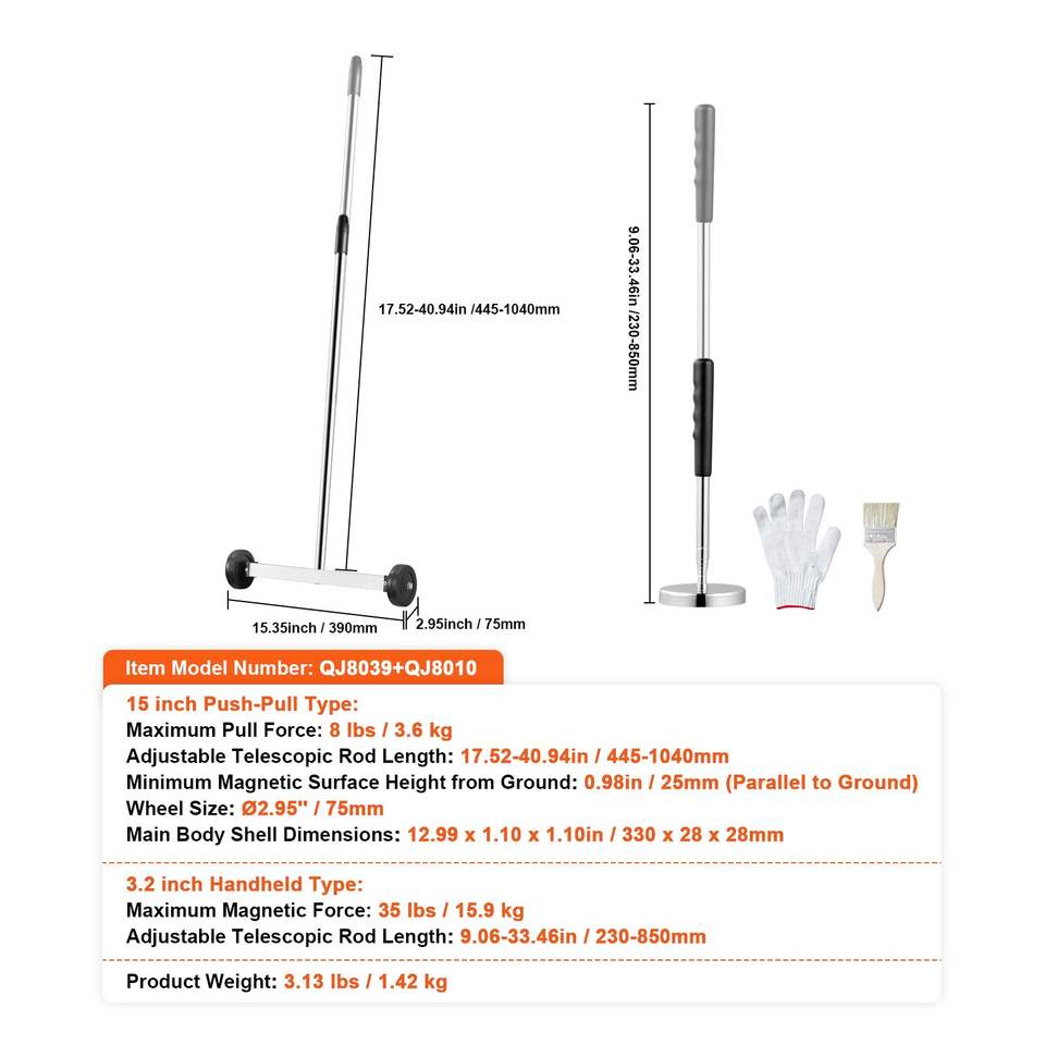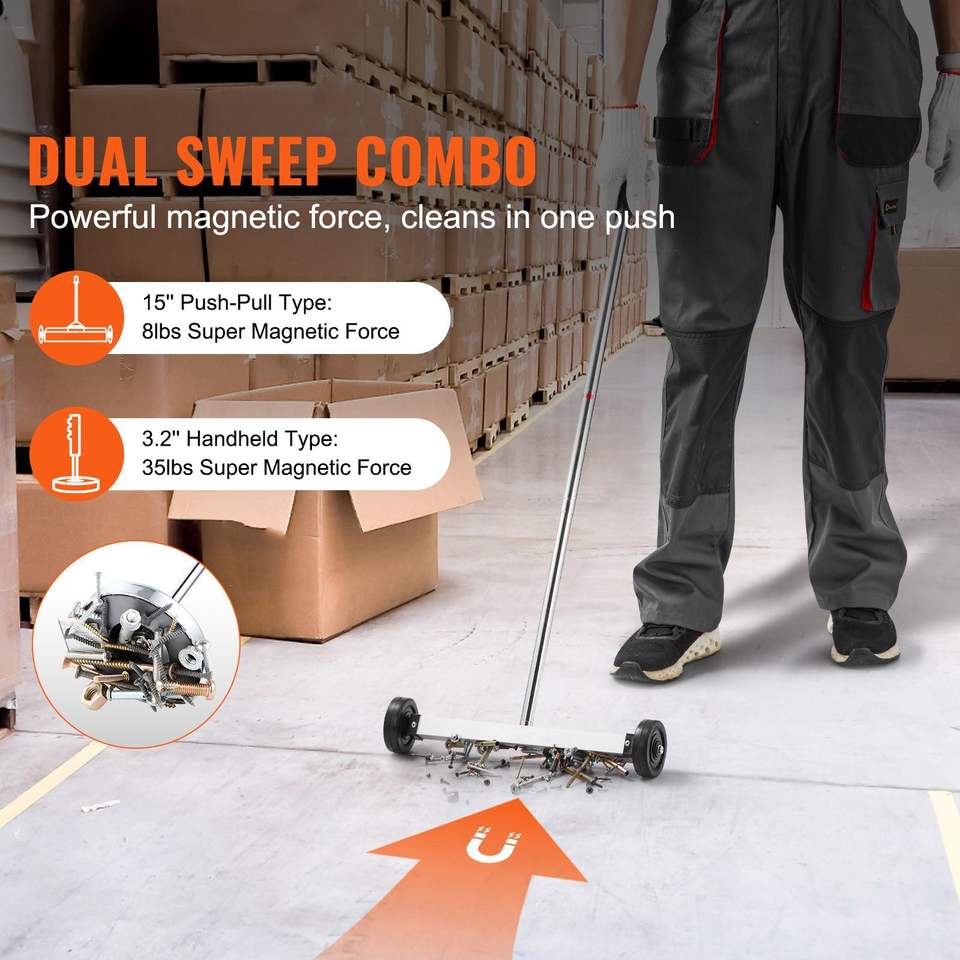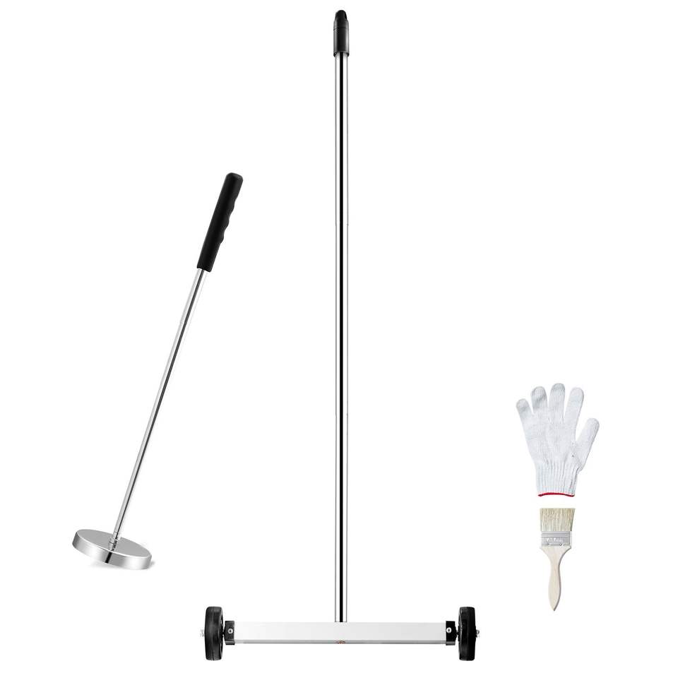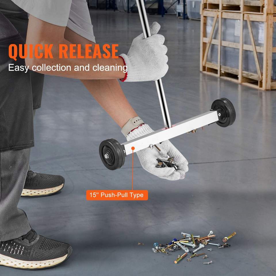 Herramienta de Recogida Magnética Telescópica de 15 Pulgadas con Mango Ajustable, Capacidad de 8 Libras, Ruedas para Barrer Pisos, Barredora Magnética