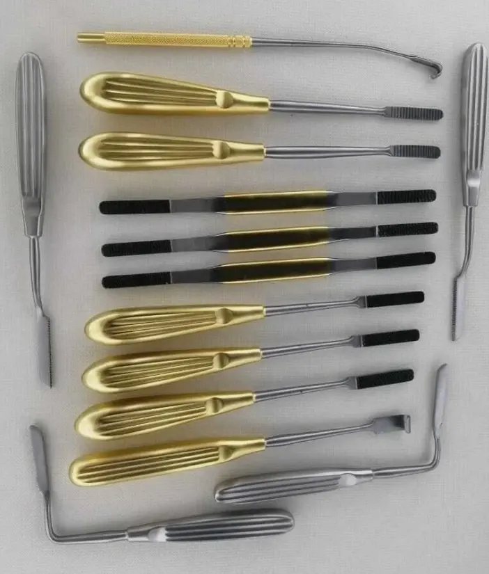 15 PCS Fuente de alimentación manual Endoscópico Levantamiento de cejas Escofinas nasales Instrumentos para Estiramiento facial Cirugía plástica