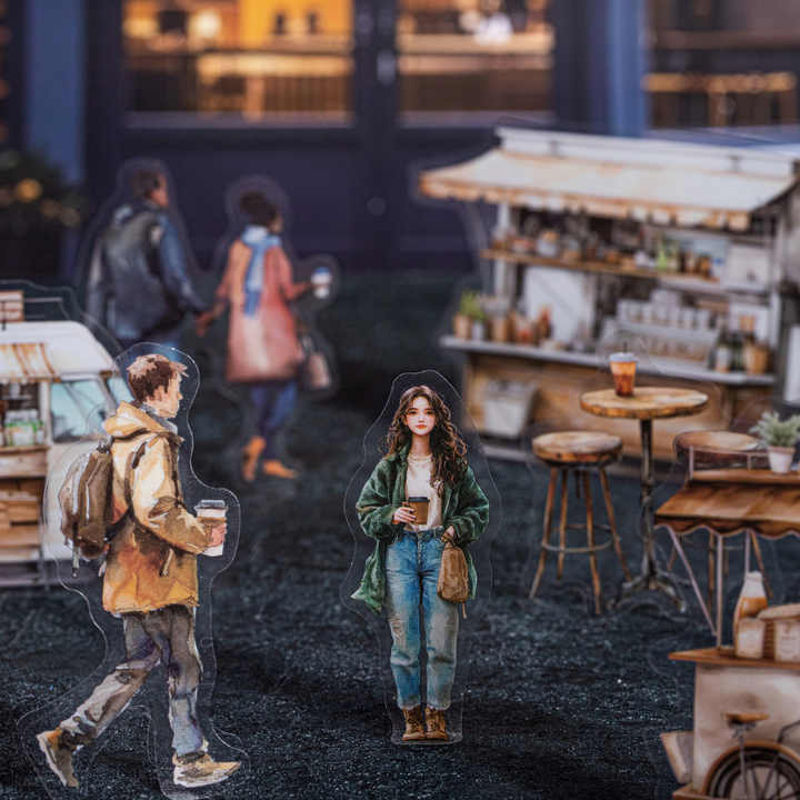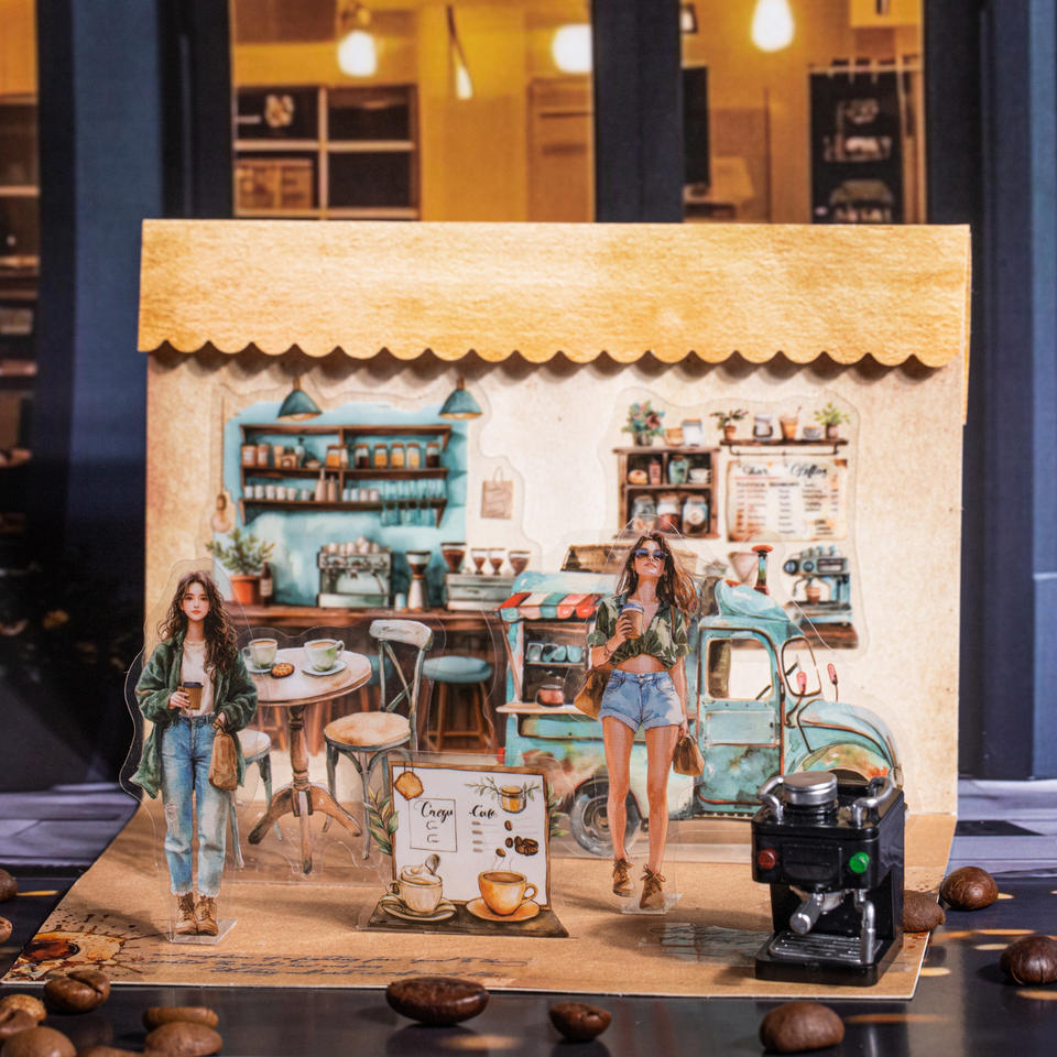 15 pegatinas por paquete Coffee Bazaar Series Coffee Scenery Theme Handbook Material Stickers
