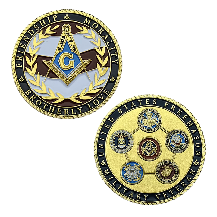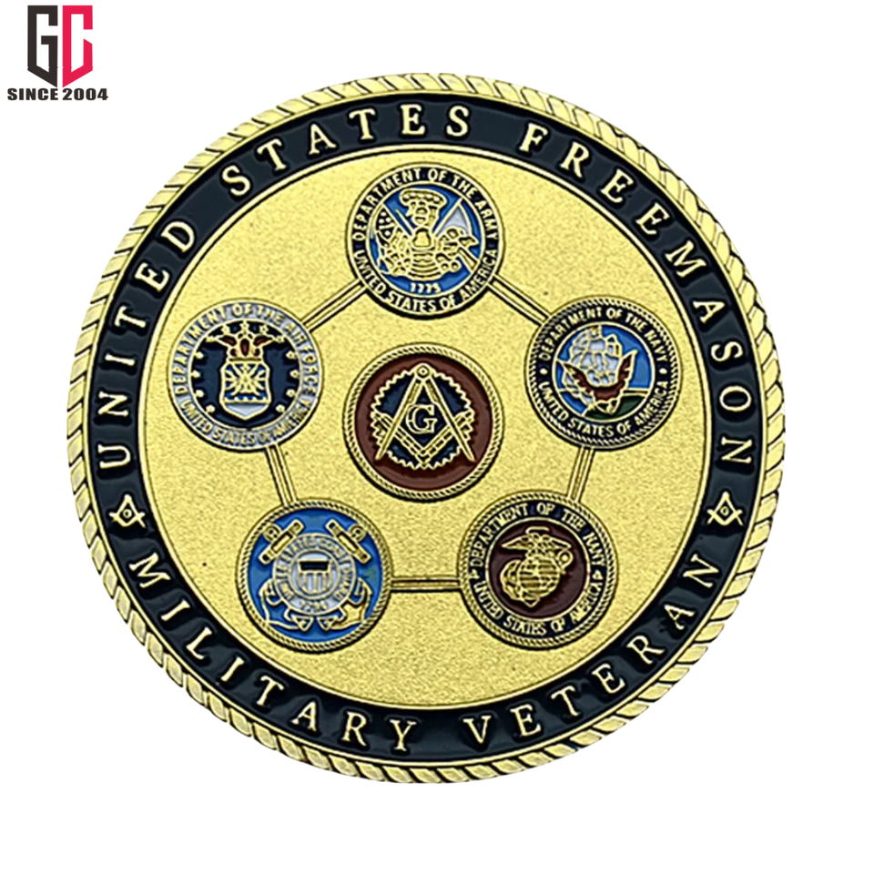 Coleccionables de monedas de desafío de esmalte de metal de veterano Masónico de EE. UU. personalizado de fábrica de 15 años
