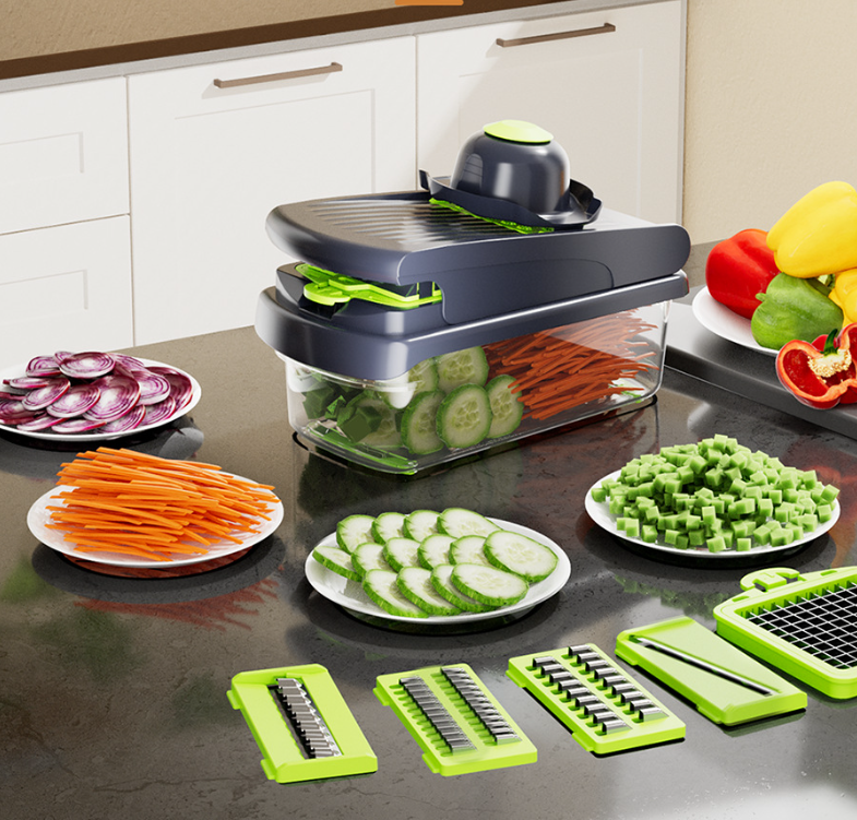 Cortador de verduras 15 en 1, rebanador de mandolina con contenedor, 7 cuchillas, cortador de alimentos, cortador de verduras