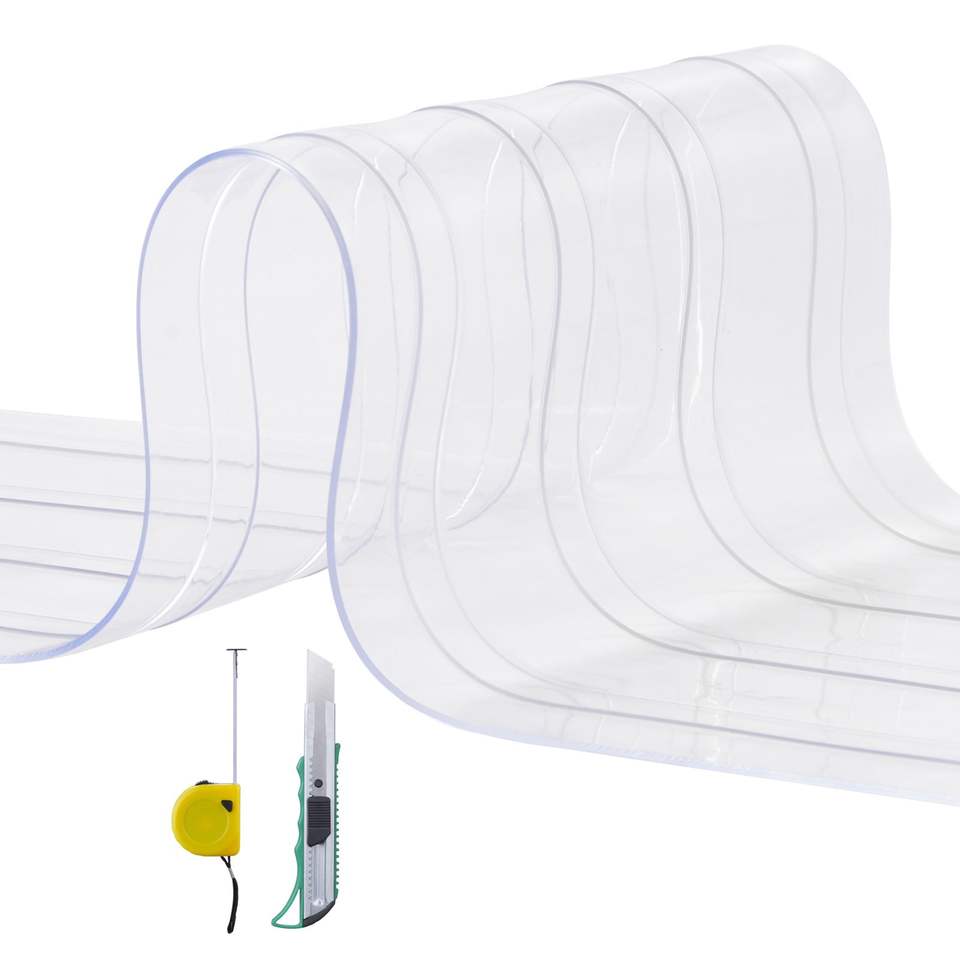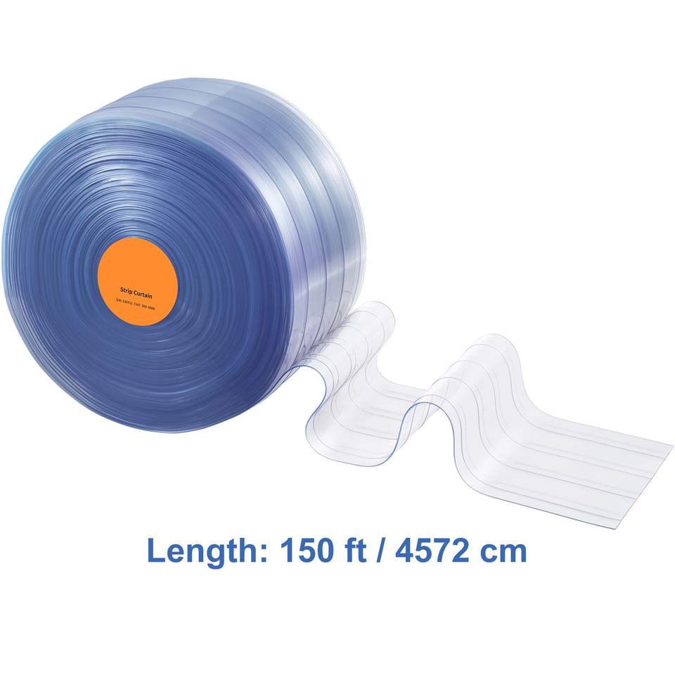 Cortina de tiras de PVC de 150 pies de largo, 8 pulgadas de ancho, 0.08 pulgadas de grosor, transparente, con nervaduras, para puertas, rollo a granel para logística y almacenes, plástico