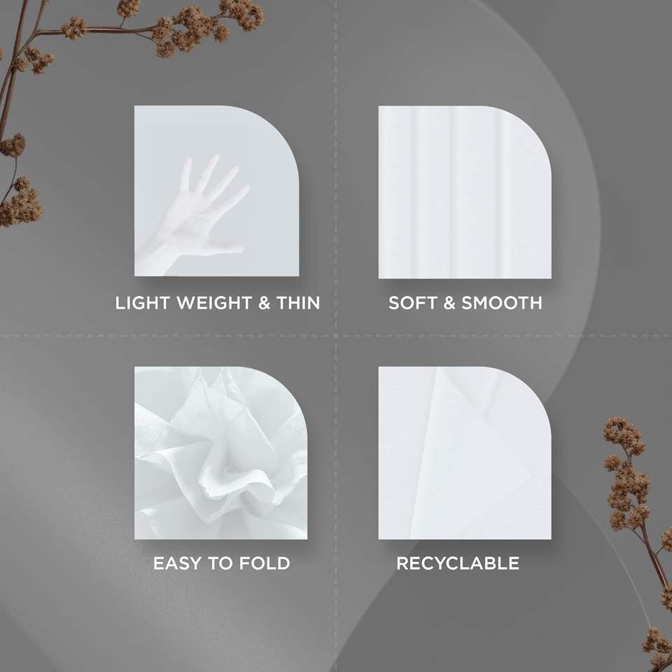 150 Hojas de Papel de Seda Blanco de 14x20 Pulgadas, Papel de Regalo Navideño, Decoraciones Navideñas, Embalaje DIY para Bolsas de Regalo, Papel 100% Blanco