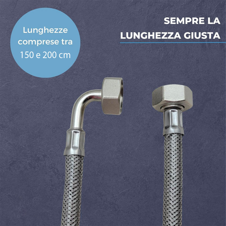 Manguera de entrada de lavadora de acero de 150 cm con curva para accesorios de limpieza