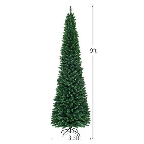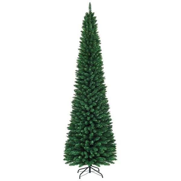Árbol de Navidad de PVC Realista de 1500 Ramas, 2.7m, Diseño Delgado Tipo Lápiz con Acabado Flocado, Ahorra Espacio para Esquinas Pequeñas