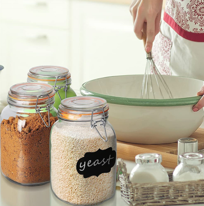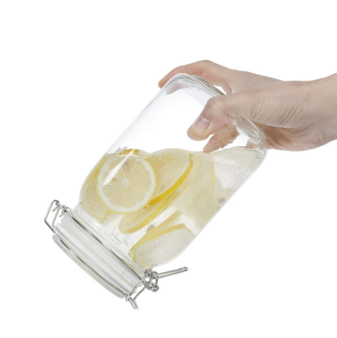 Botella de vidrio de gran capacidad de 1500ml, almacenamiento de alimentos, 50 oz, para galletas de miel, depósito de almacenamiento con hebilla a prueba de humedad
